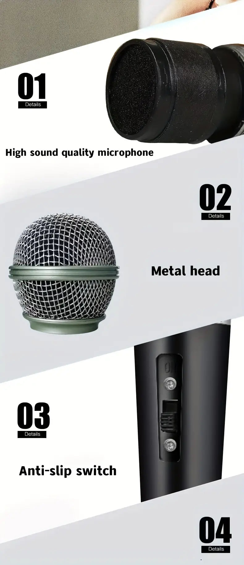 Wired Handheld Dynamic Microphone with 6.35mm Jack for Karaoke Speech Streaming Black