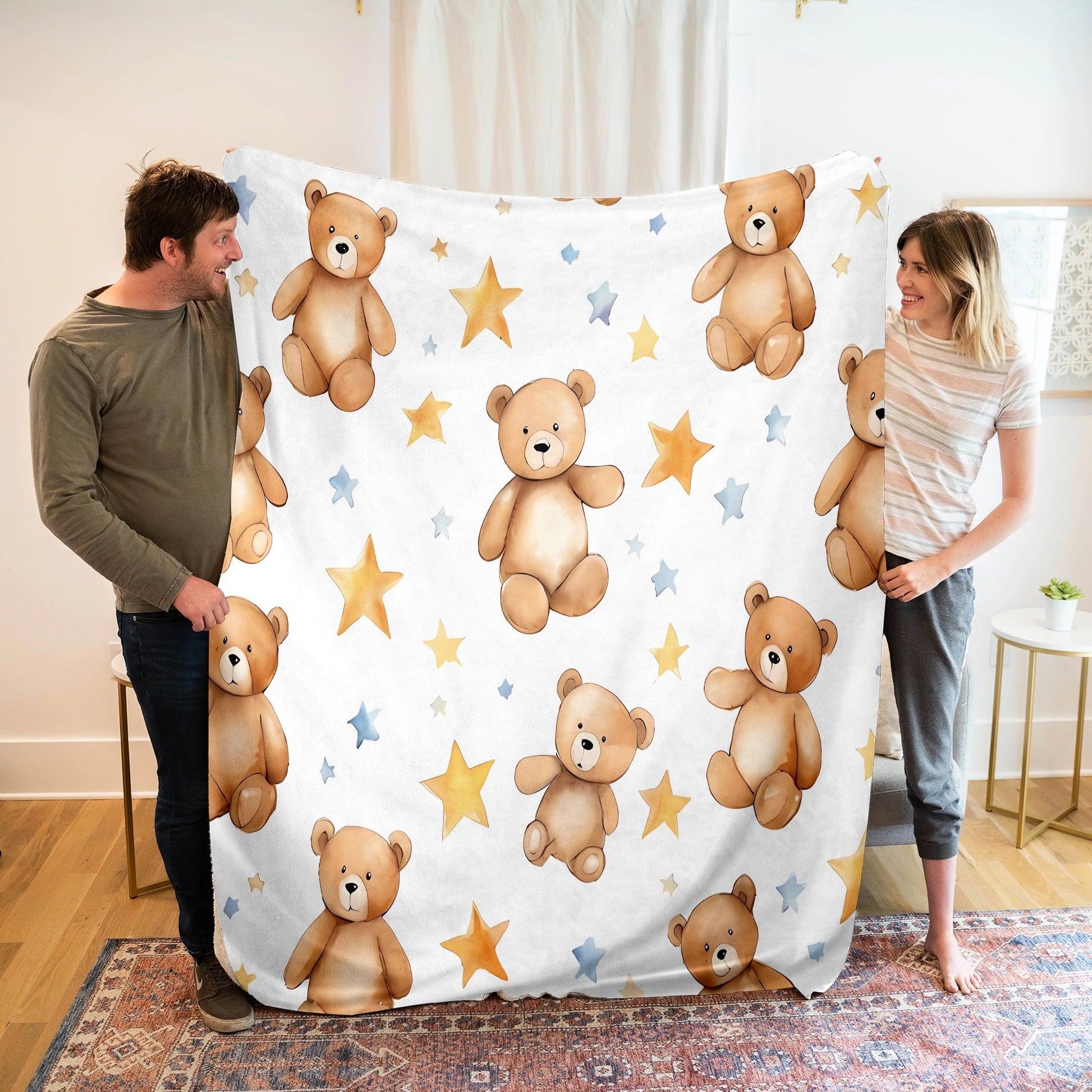 Cartoon Bear Printed Flannel Fleece Throw Blanket Soft Cozy All-Season Gift