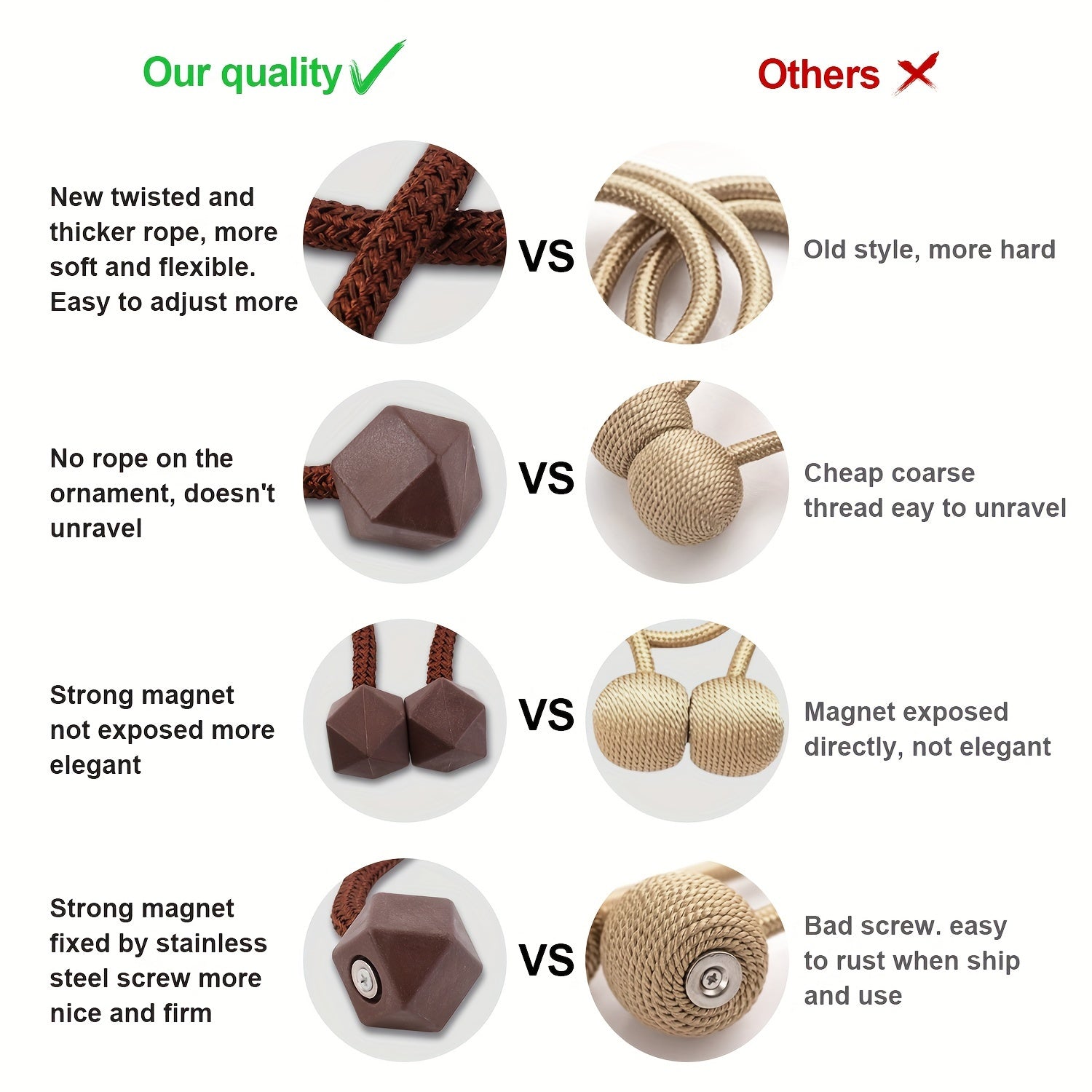 Magnetic Curtain Tiebacks with Thick Twist Rope and Strong Hold for Living Room and Home Decor