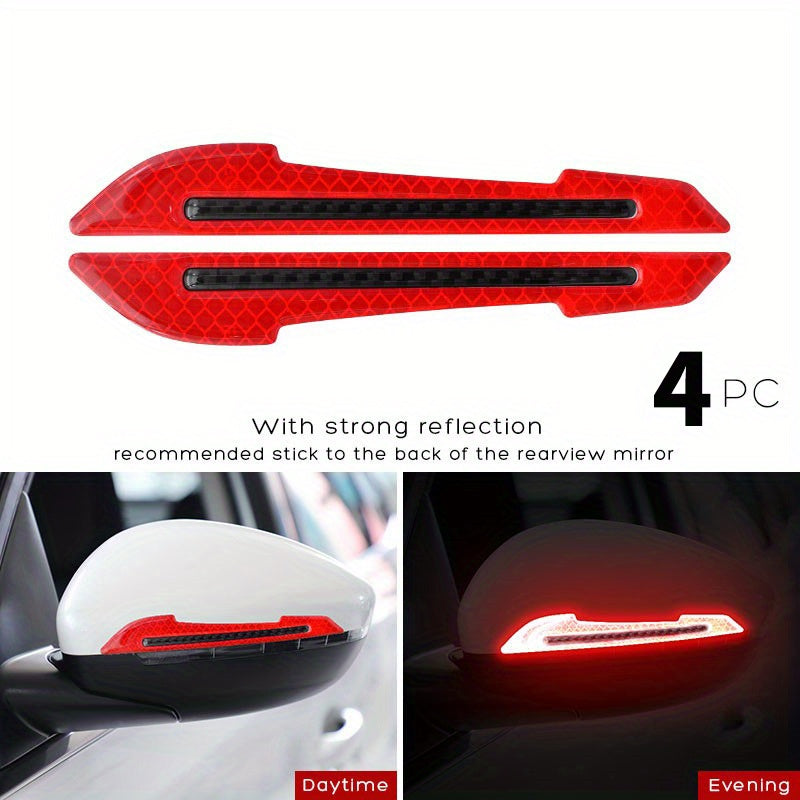 Pairs Reflective Car Rearview Mirror Safety Warning Stickers Auto Film Strips in Red White Blue Green