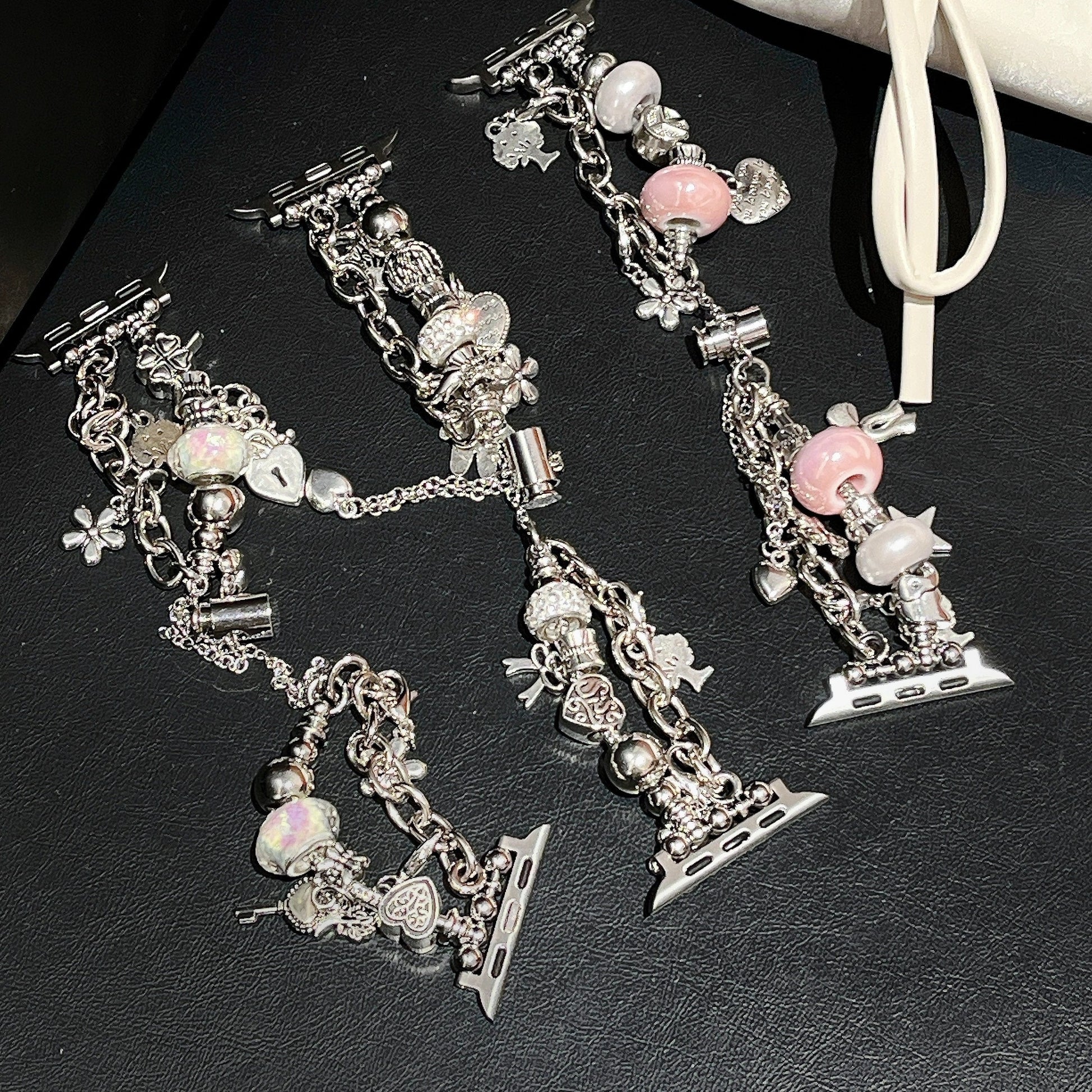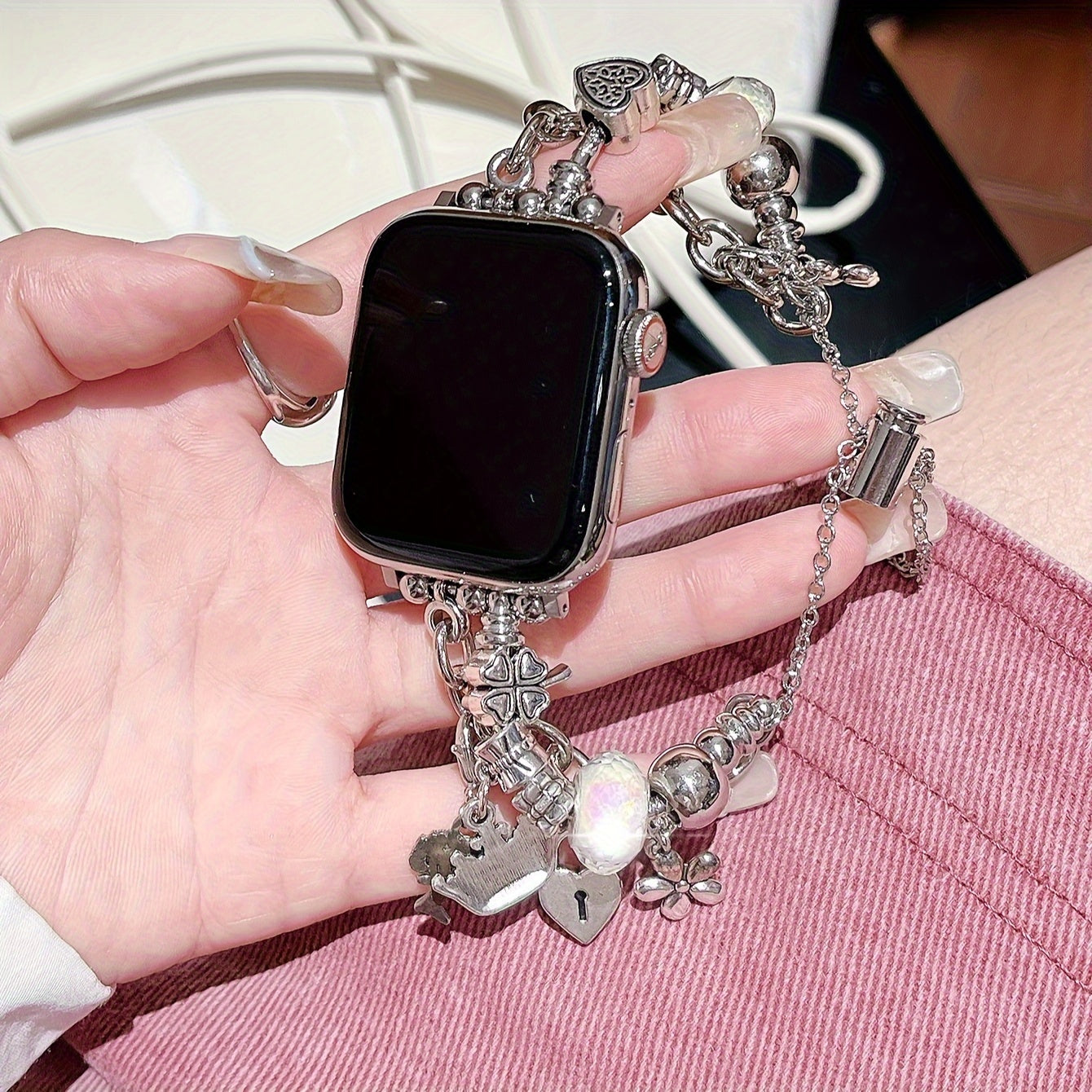 Smartwatch Band for Apple Watch Series 1-9 SE Ultra Copper Pink Beads Floral Water-Resistant Outdoor
