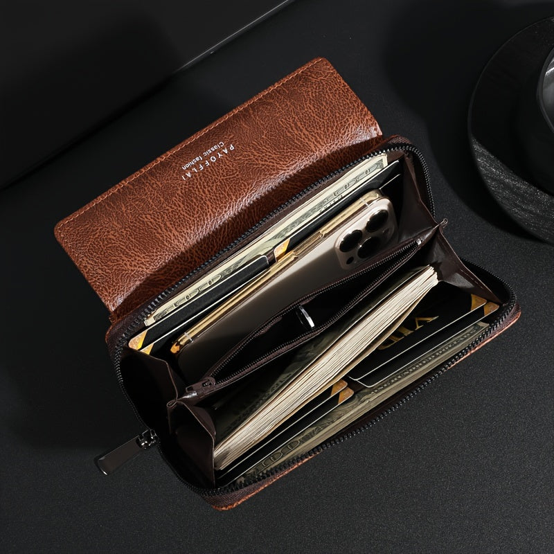 Men's Business Wallet Faux Leather Brown Slim Card Holder with Coin Pocket