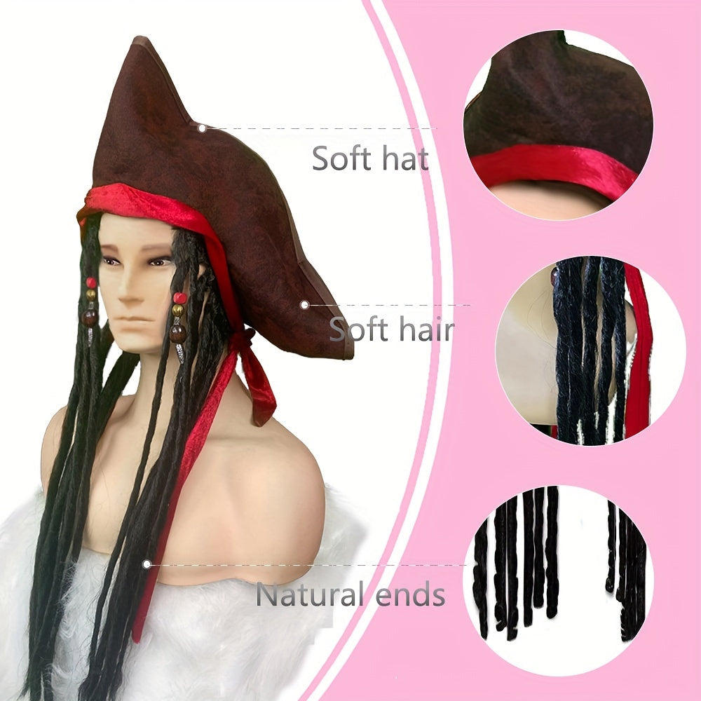 Pirate Dreadlocks Wig with Hat Black Long Beaded Dreads for Cosplay Party