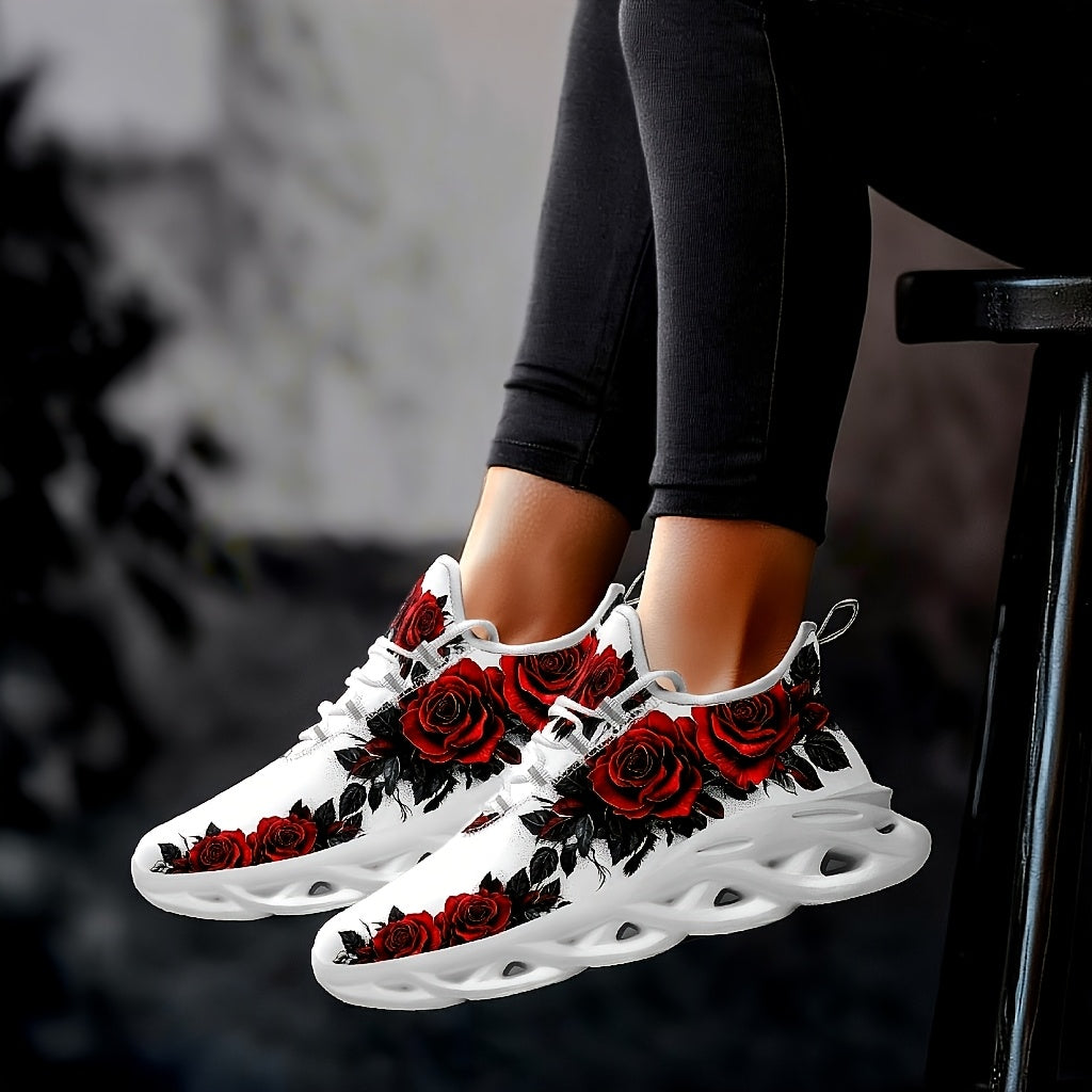 Plus Size Black Rose Sneakers Lightweight Cushioned Support Breathable Fabric All-Season