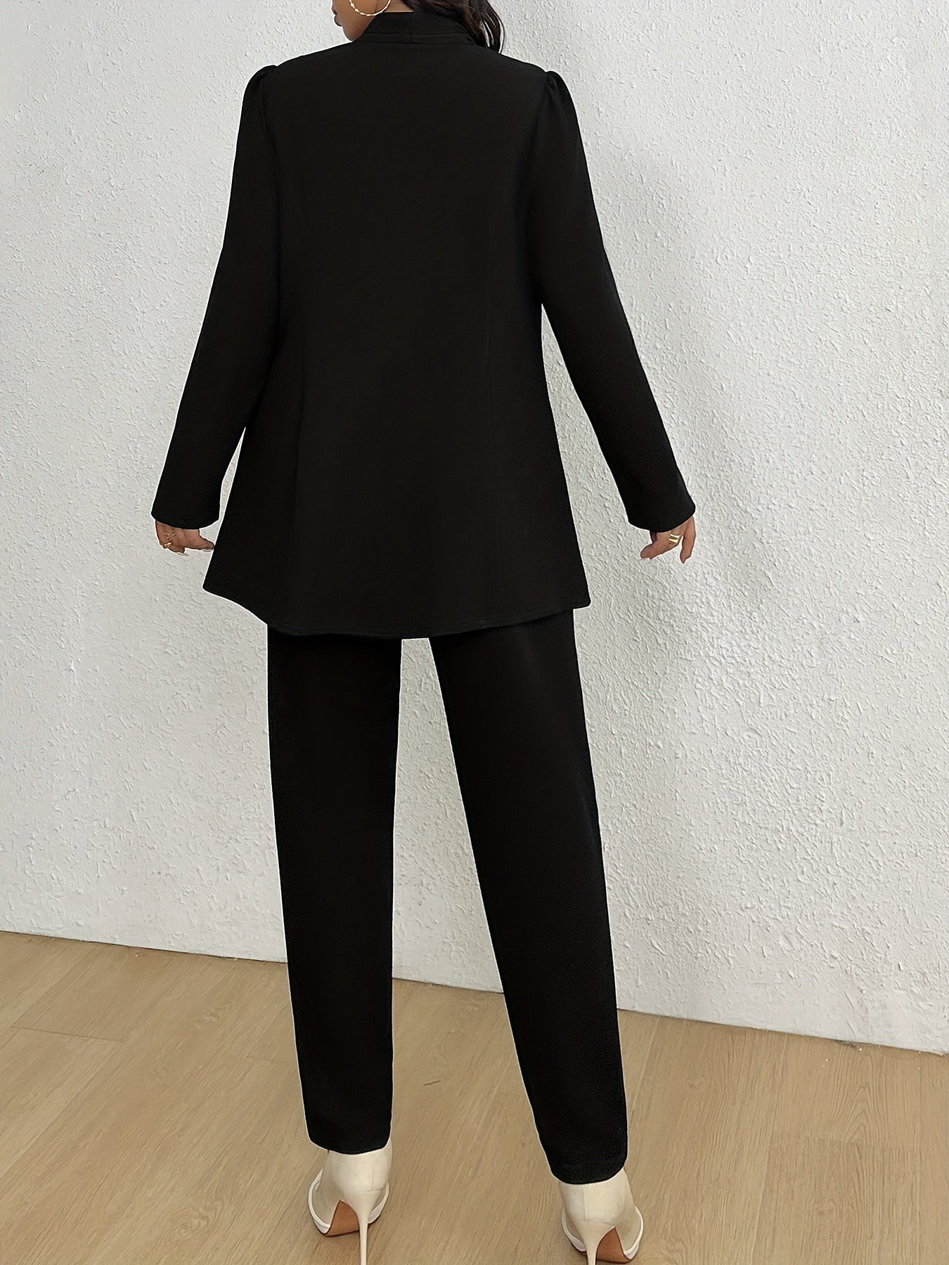Plus Size Business Pantsuit with Double-Breasted Blazer and High Waist Slim Pants