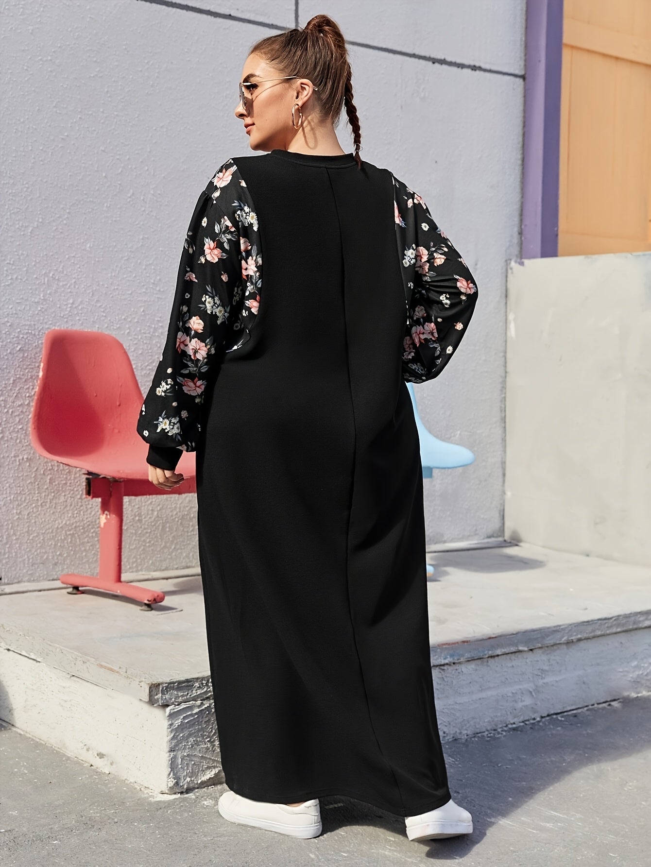 Plus Size Floral Kaftan Dress for Women Casual Spring Fall Polyester