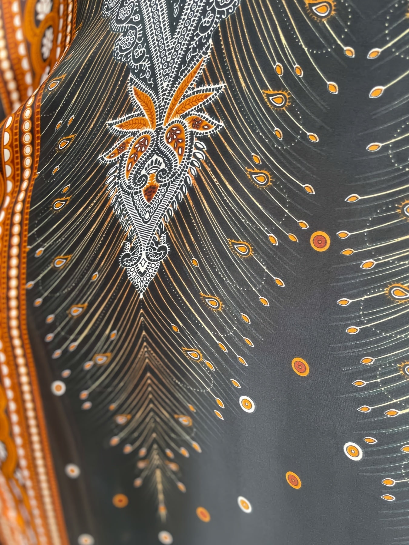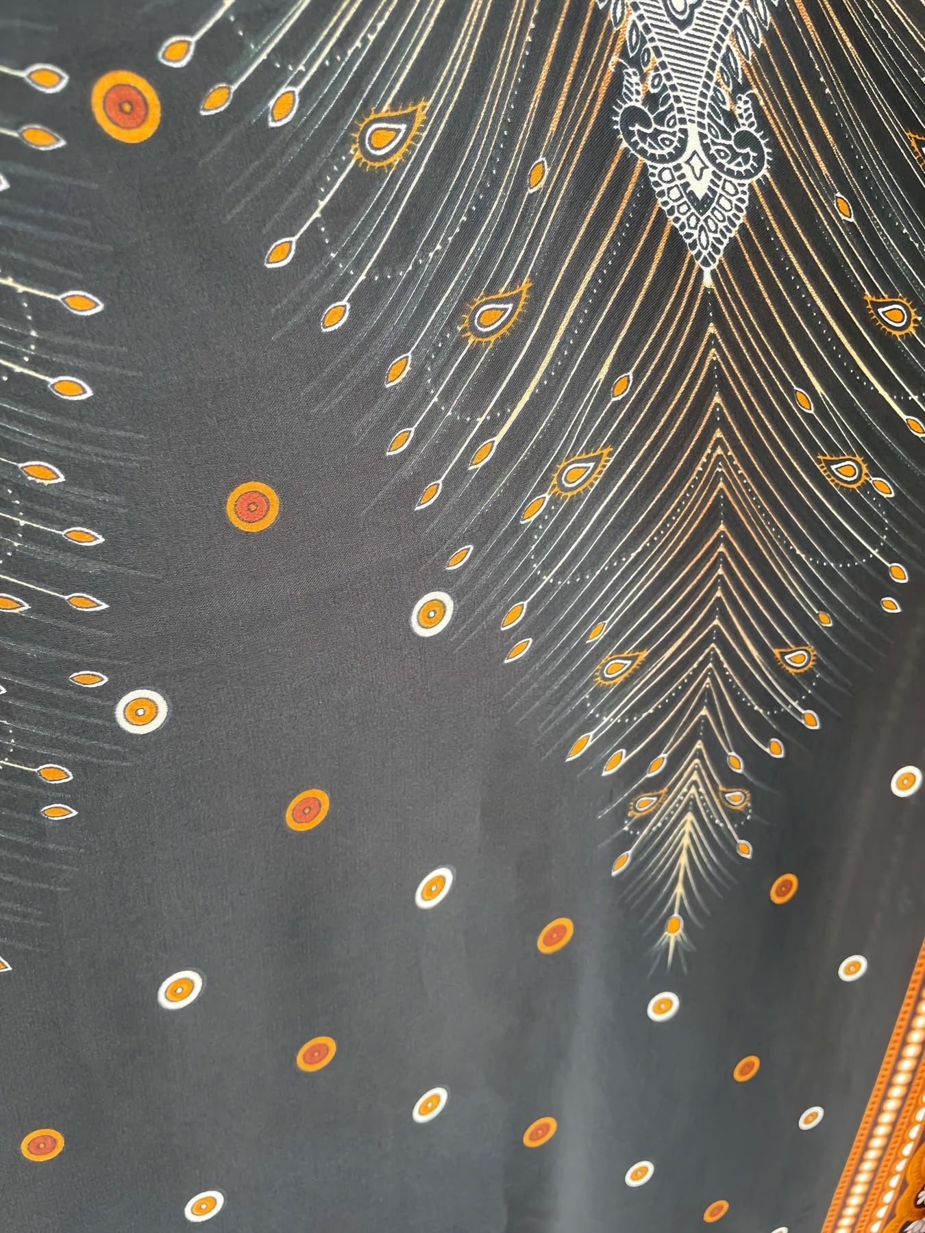Plus Size Floral Kaftan Dress Longline Batwing Sleeve Lightweight Polyester