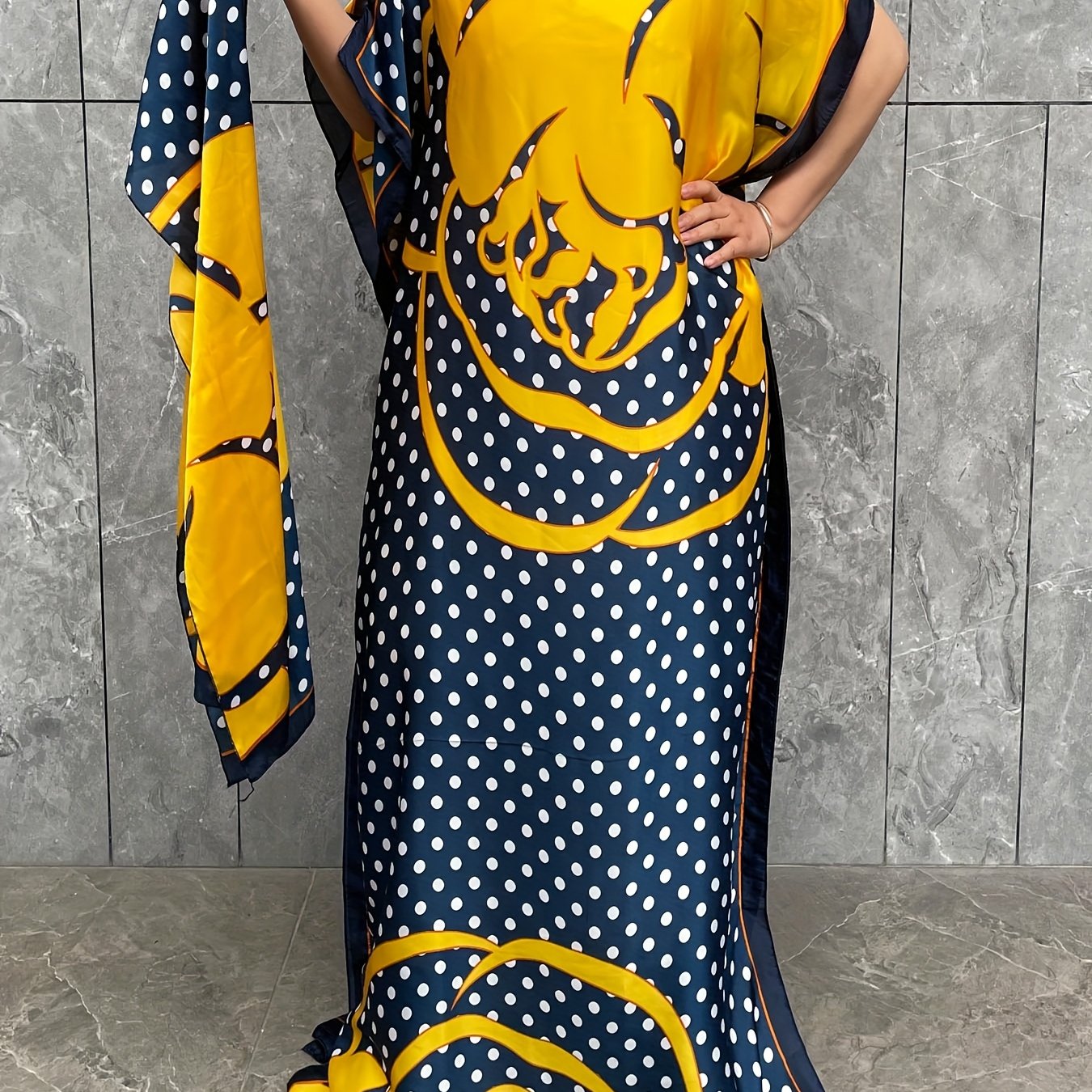Plus Size Floral Maxi Kaftan Dress - Short Sleeve, Flowy, Summer Beach