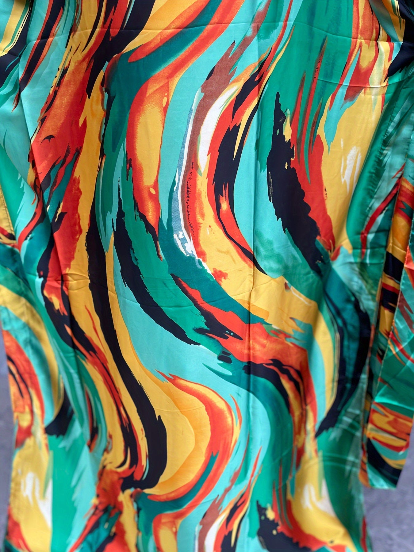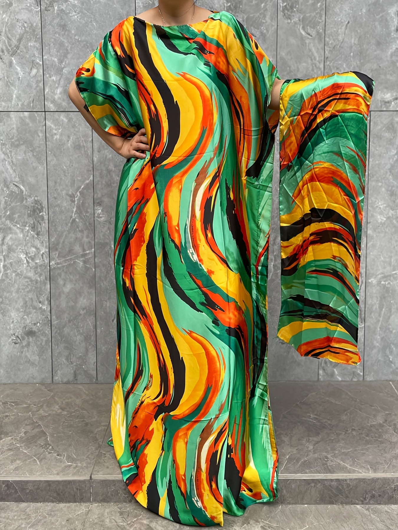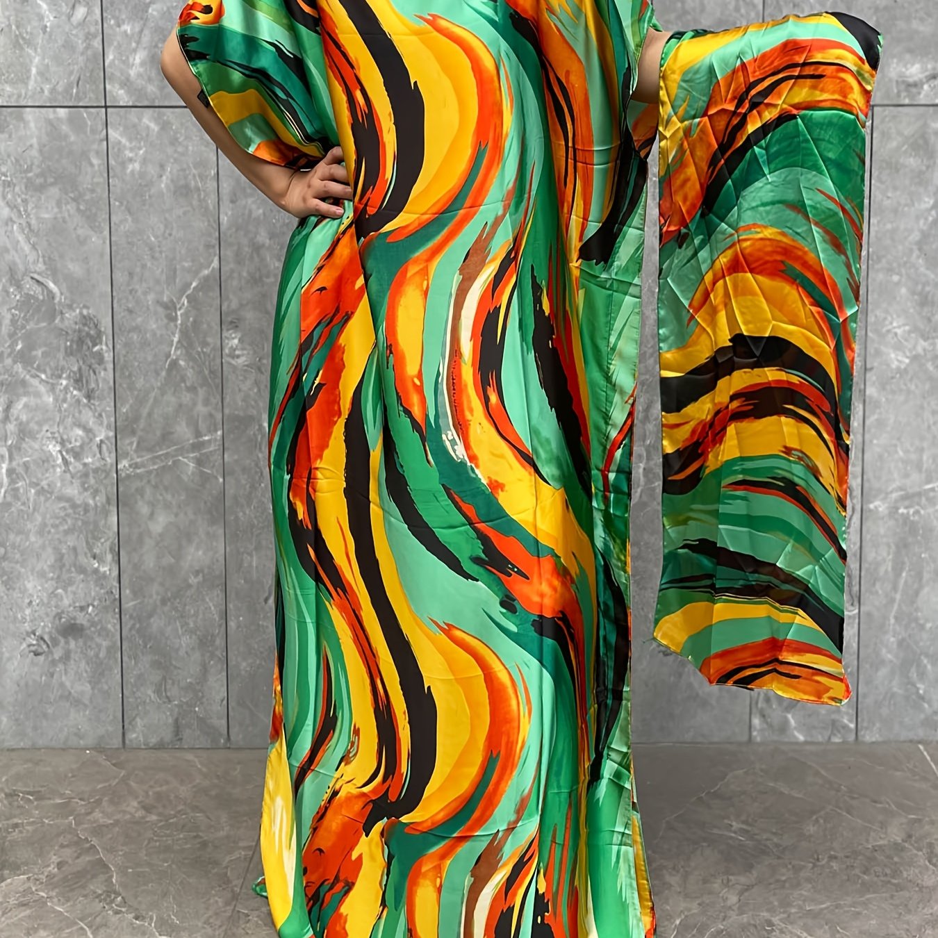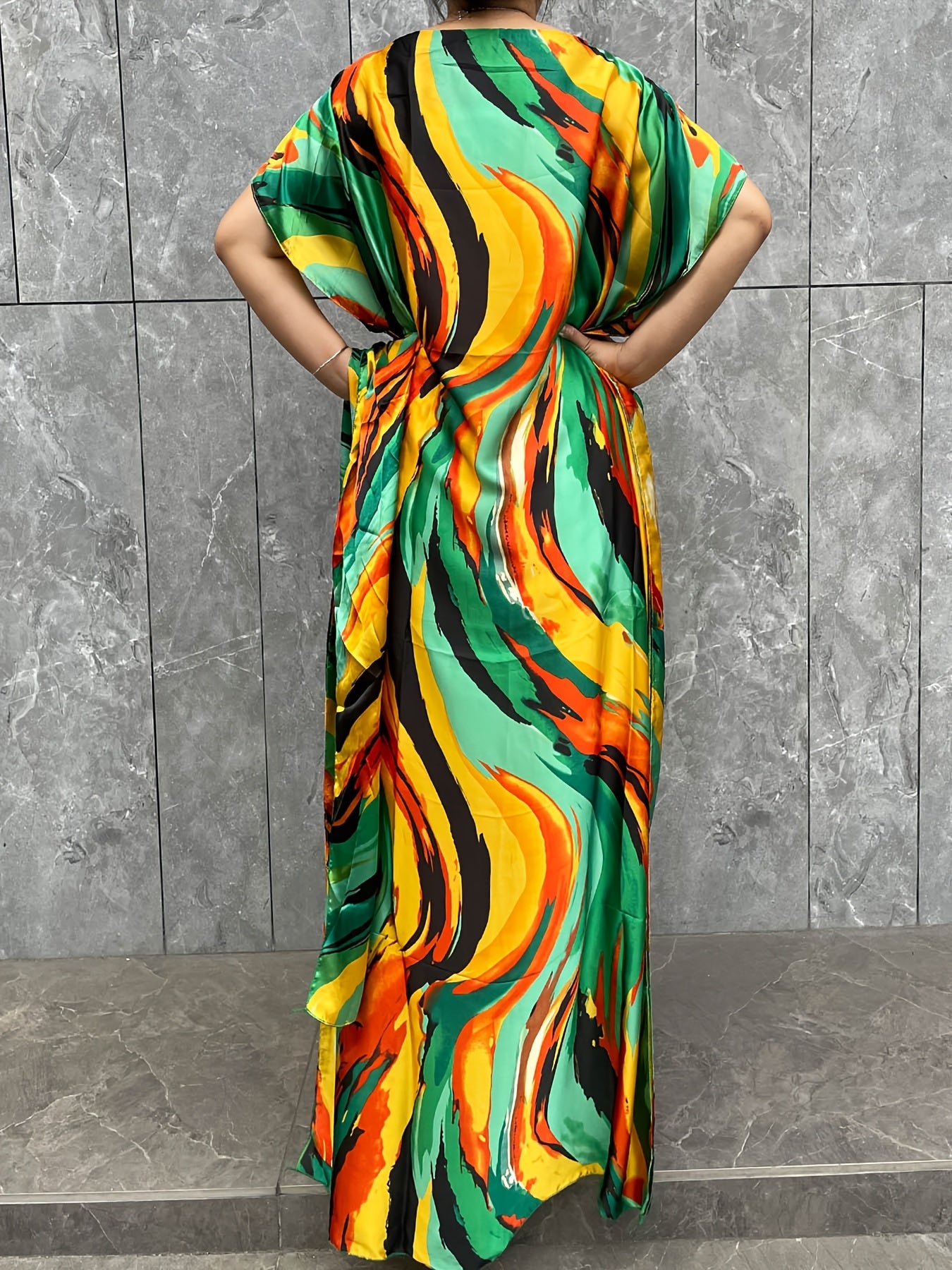 Plus Size Floral Pattern Longline Dress Short Sleeve Crew Neck Summer Clothing