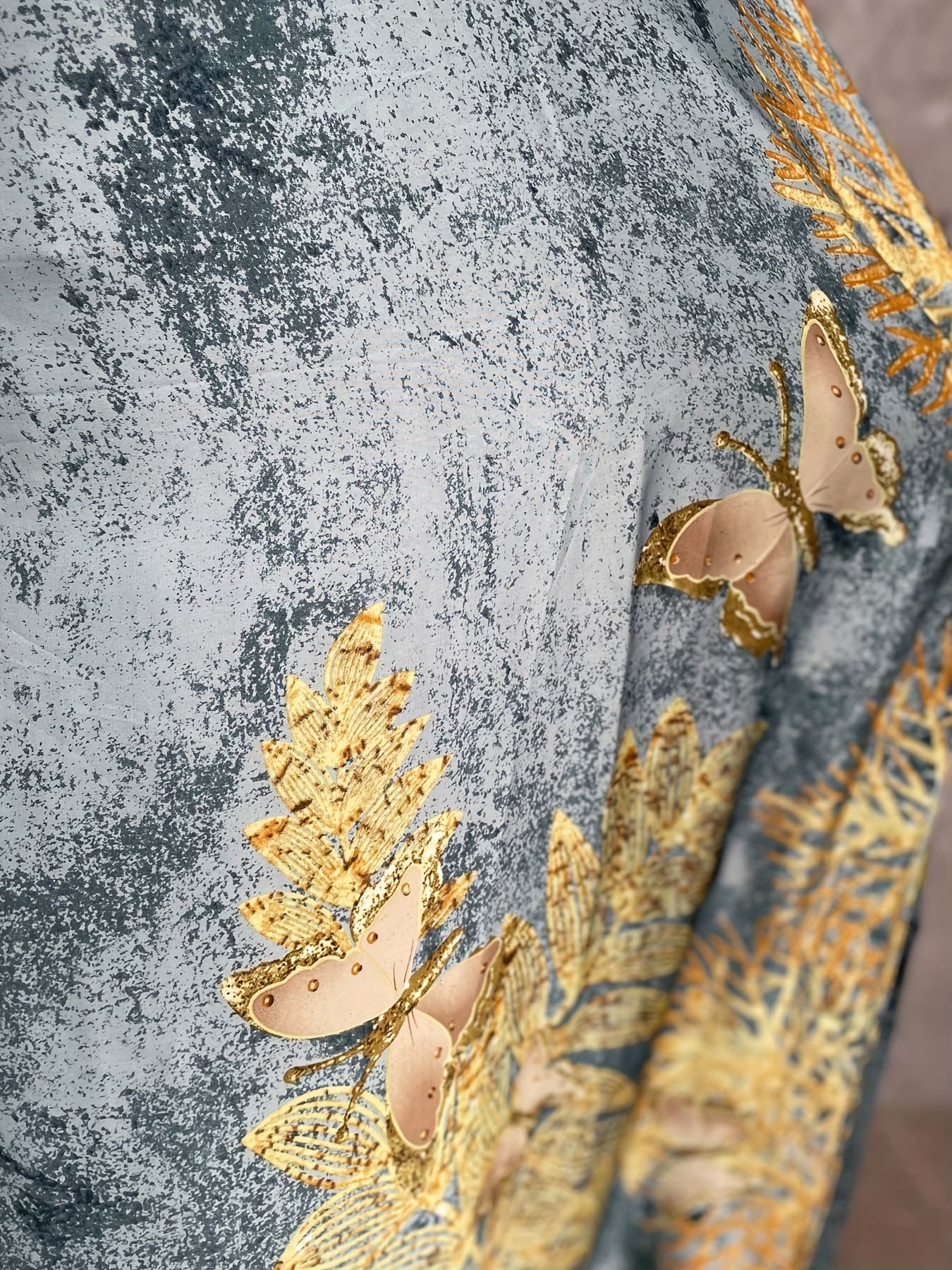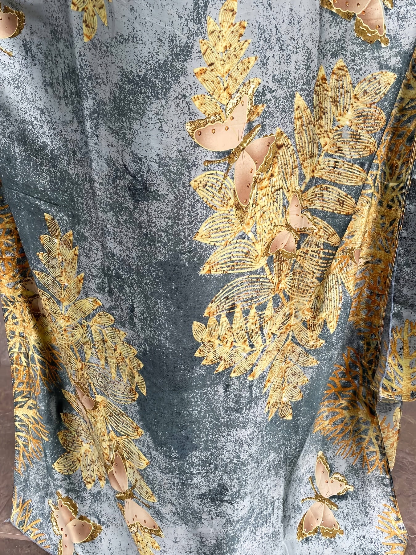 Plus Size Floral Print Tunic Dress With Scarf Polyester Crew Neck Batwing Sleeve
