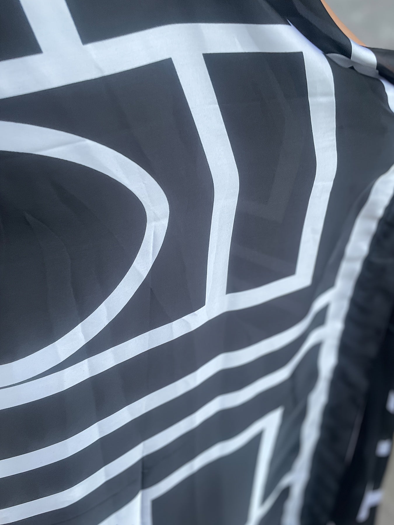 Plus Size Geometric Print Maxi Dress - Flattering Crew Neck Short Sleeves