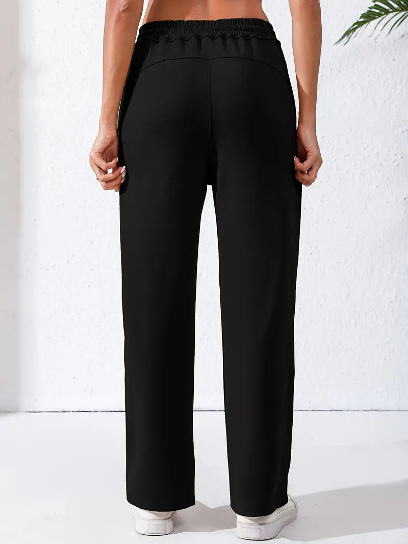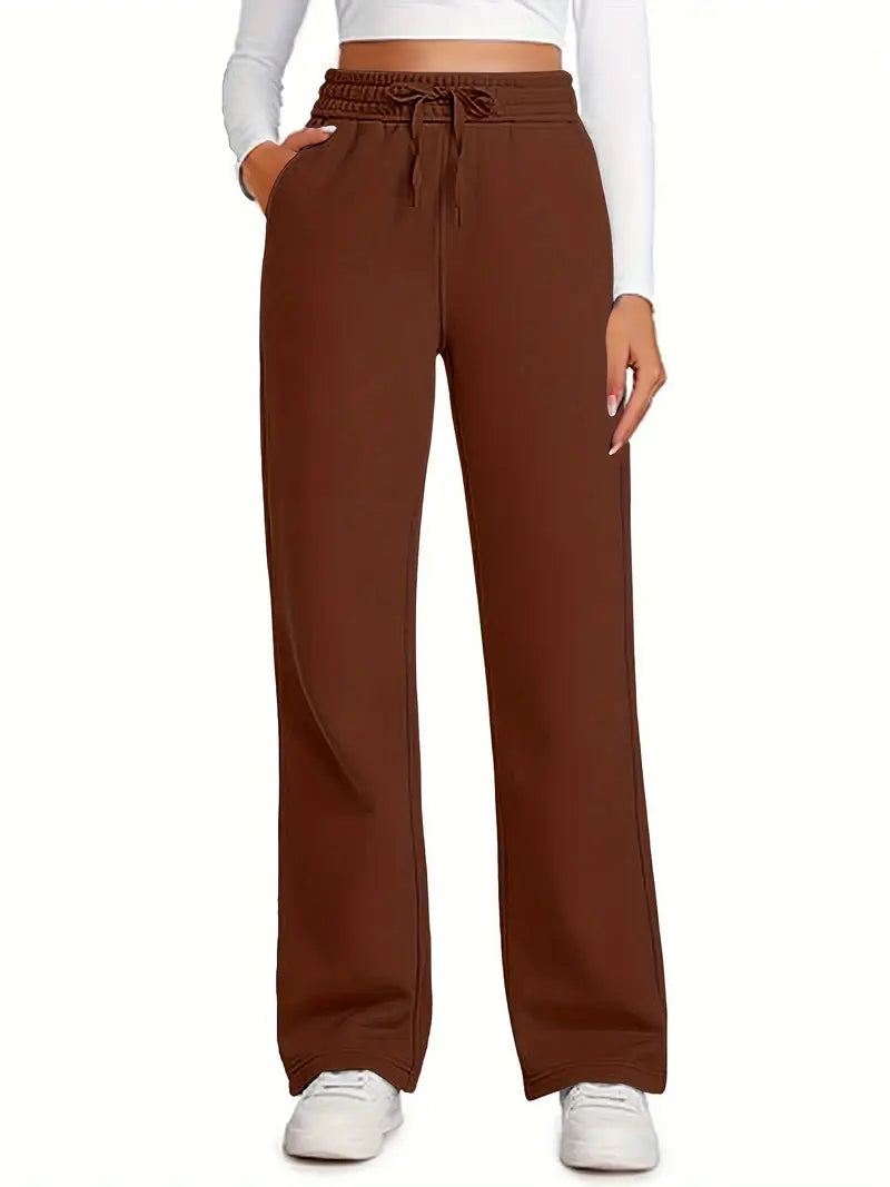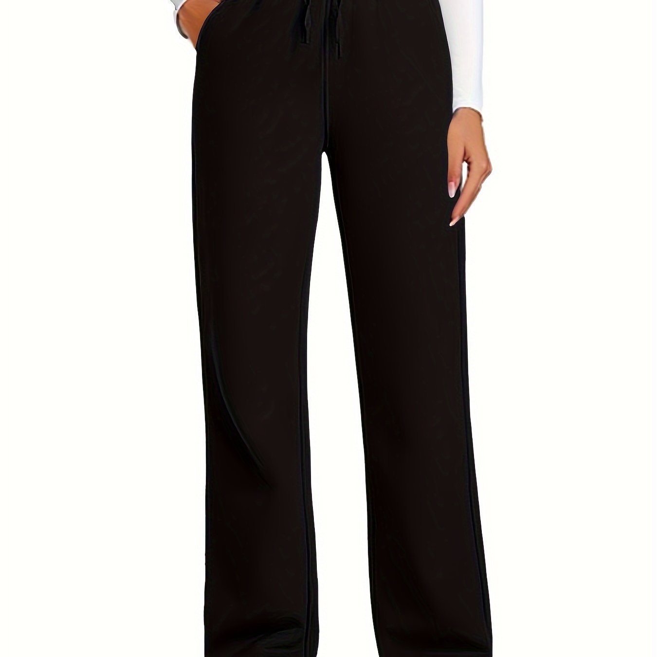 Plus Size High Waist Drawstring Sweatpants Polyester Knit Casual Wide Leg Lounge Pants