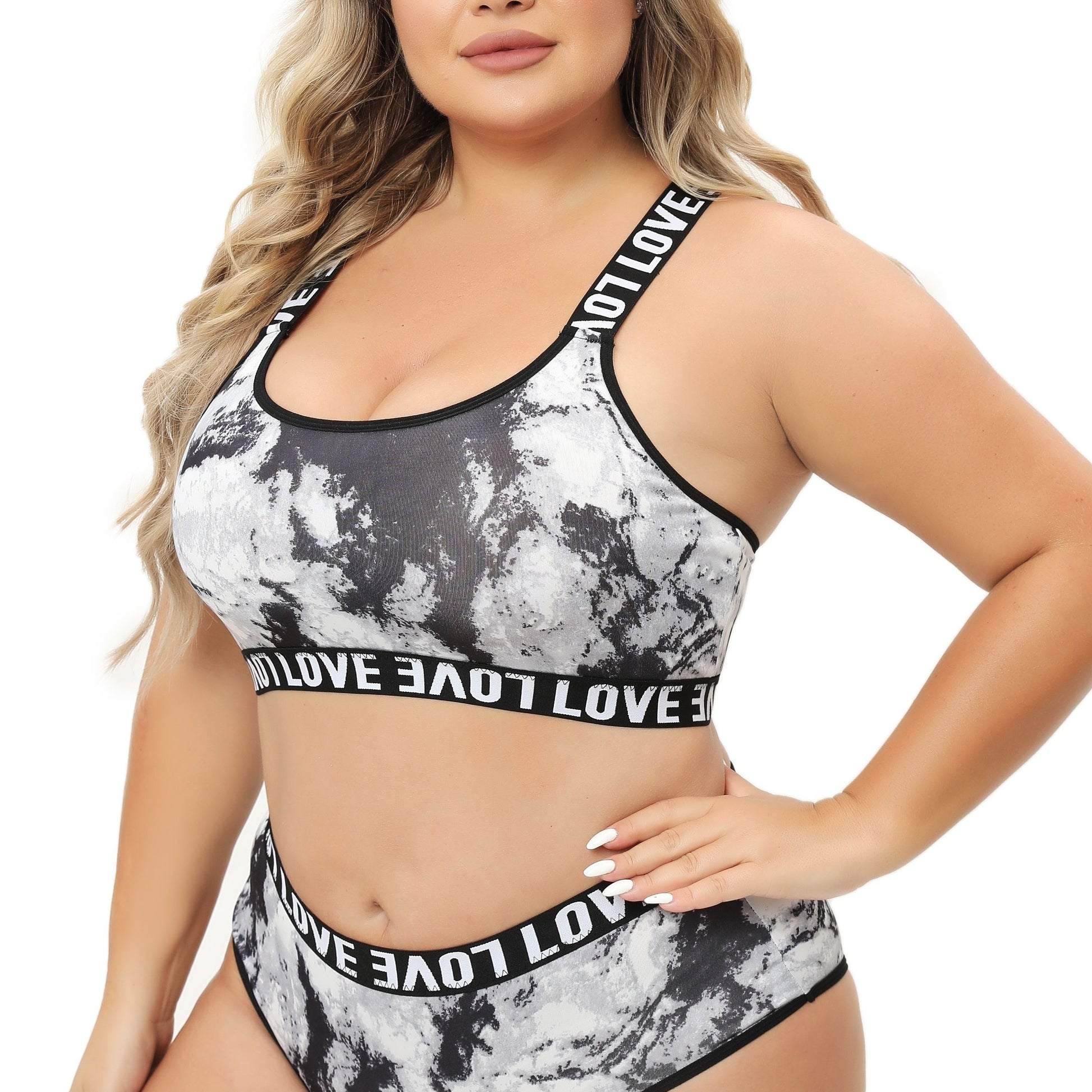 Plus Size Lace Tie Dye Lingerie Set Polyester Elastane Medium Stretch