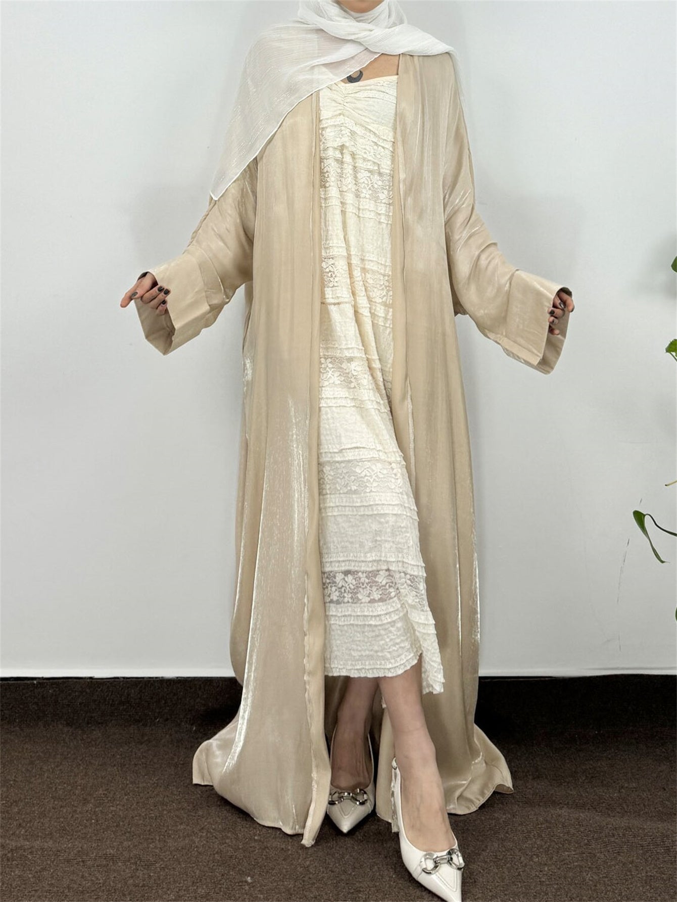 Plus Size Muslim Abaya Robe Satin-Finish Full-Length Dress for Women