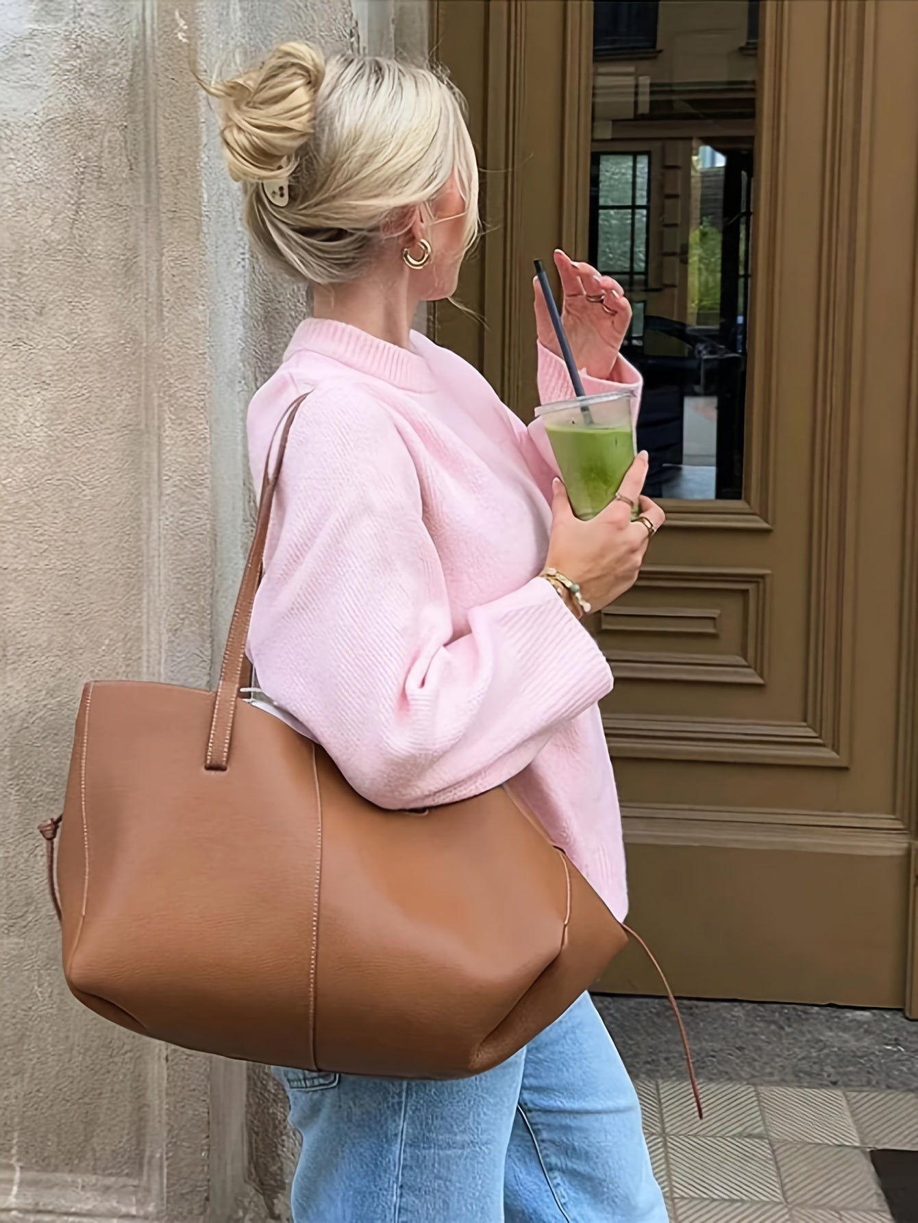 Plus Size Oversized Polyester Crewneck Sweater Casual Pullover All-Season Solid Color