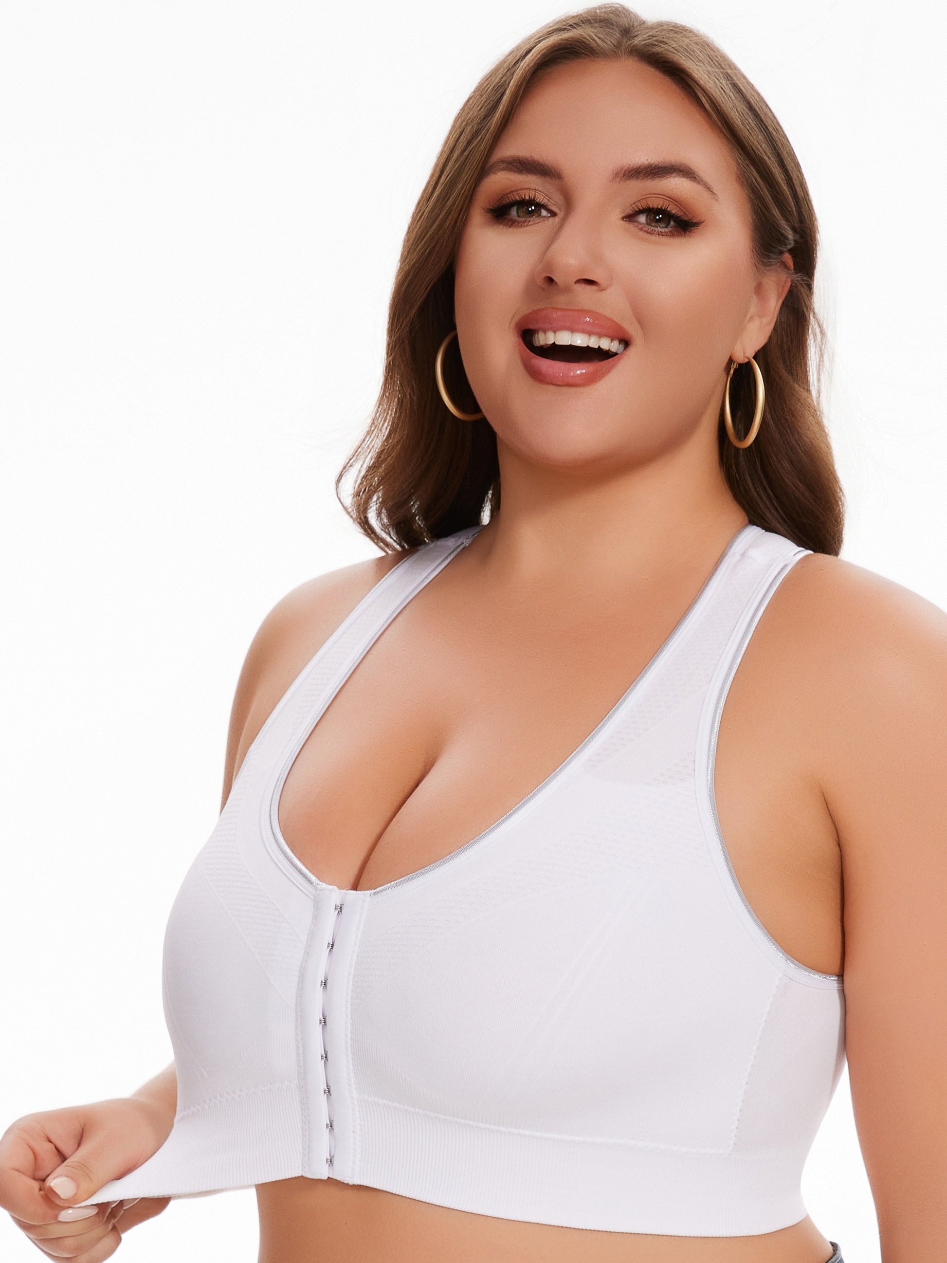 Plus Size Sports Bra Wire-Free Front Closure Breathable Yoga-Ready