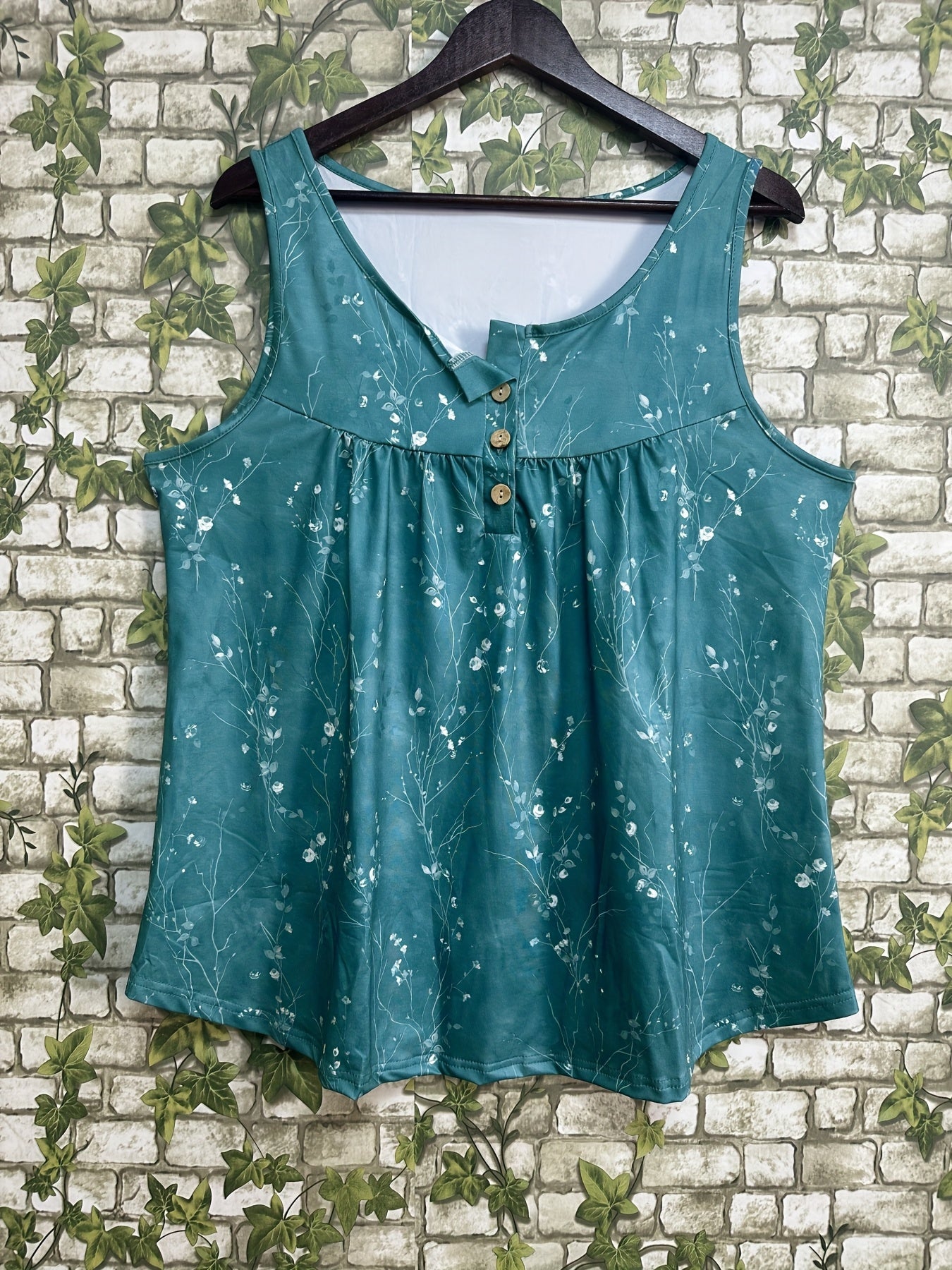 Plus Size Tank Top with Pleats and Button Front for Women