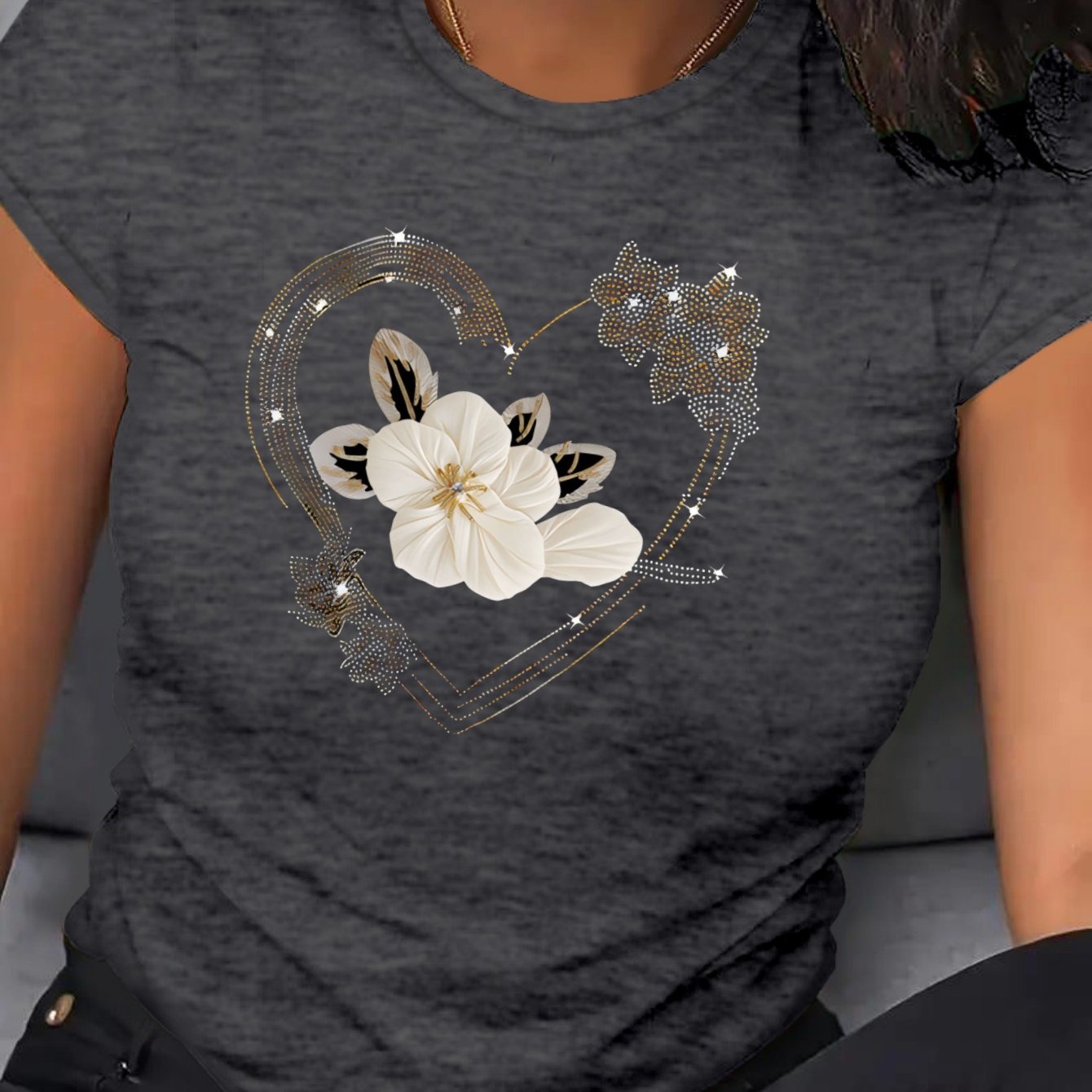 Plus Size Women's Floral Heart T-Shirt Breathable Polyester Short Sleeve