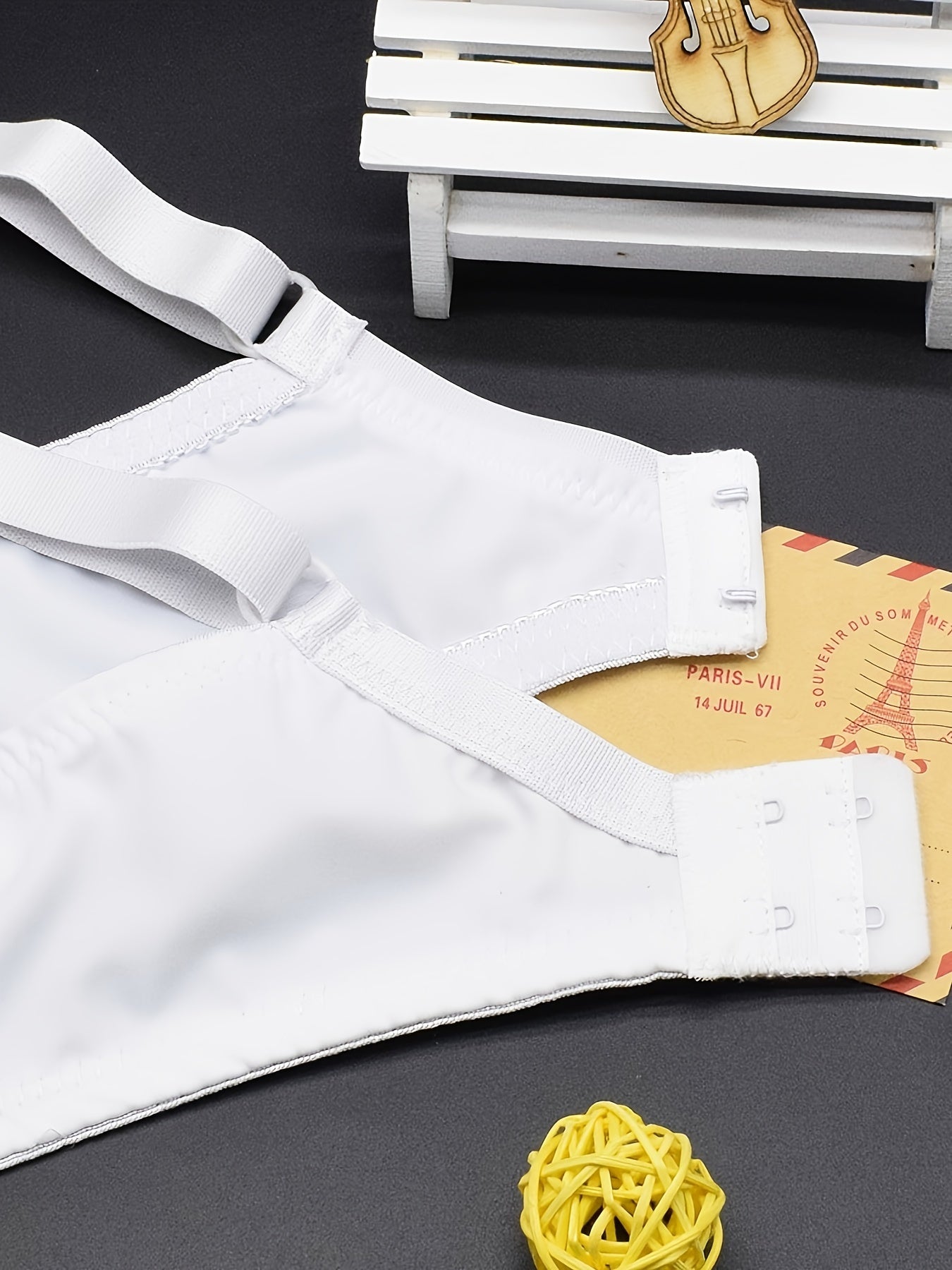 Plus Size Women's Lace Lingerie Bra with Floral Print V-Neck Scalloped Trim Light Blue