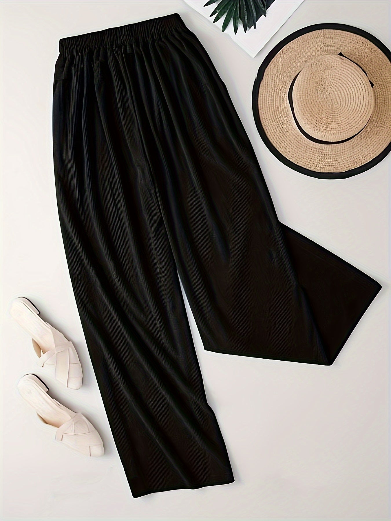 Plus Size Women's Pink Corduroy Wide-Leg Pants Elastic Waist Casual Semi-Formal