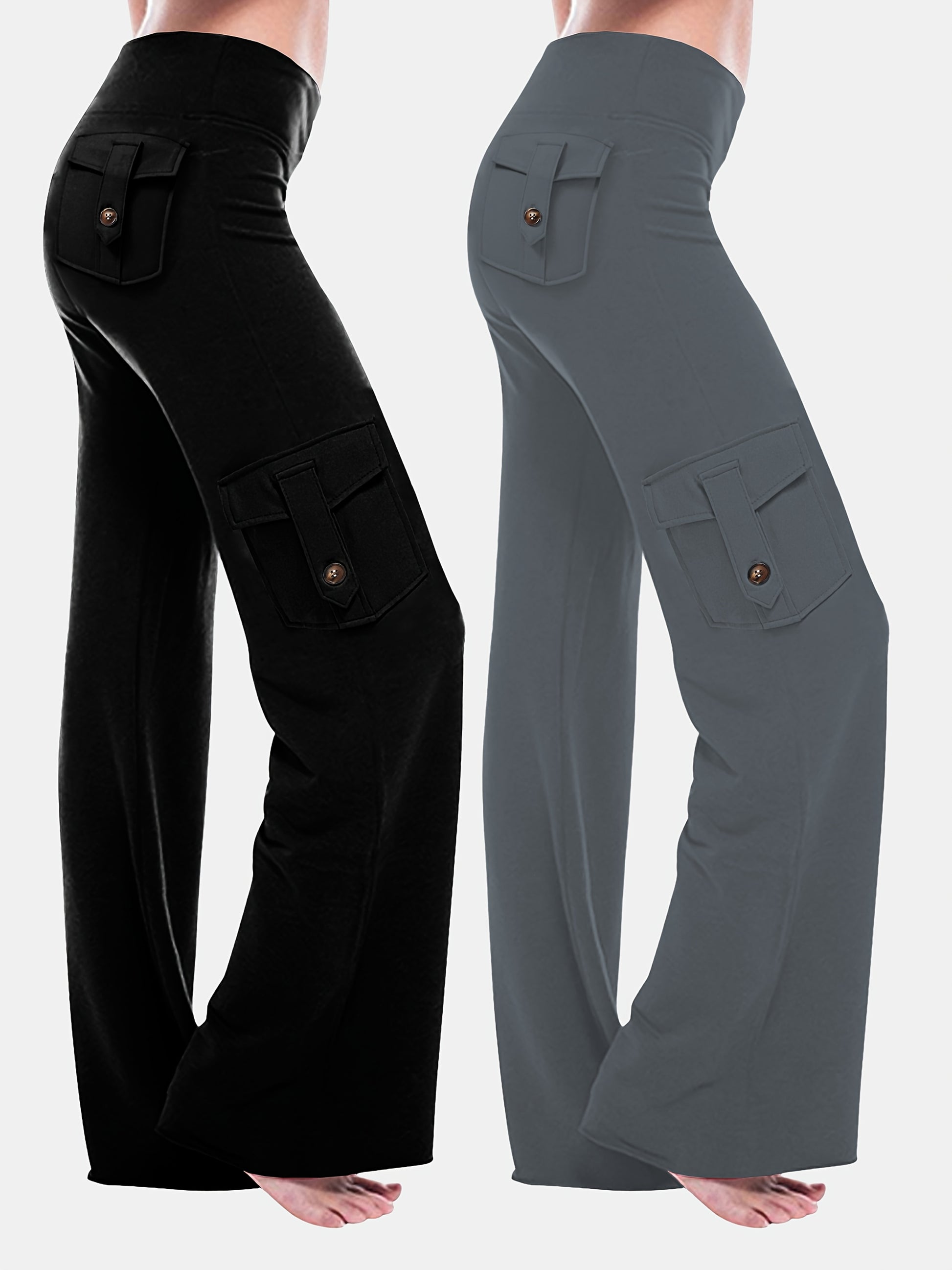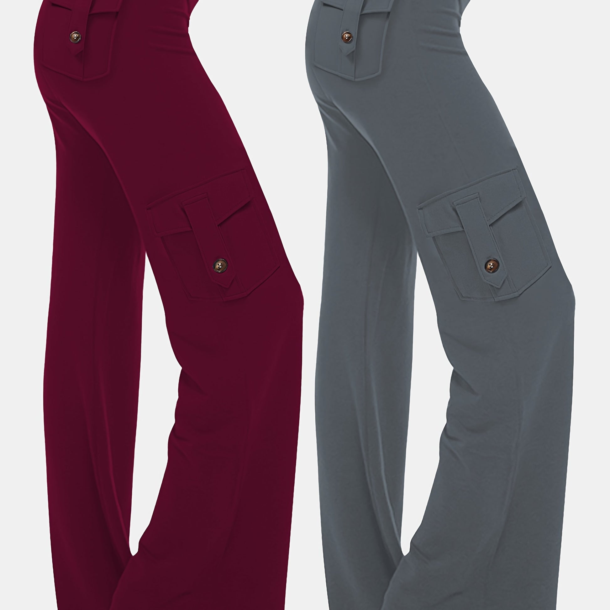 Plus Size Women's Skinny Wide Leg Pants with Pockets Moisture Wicking