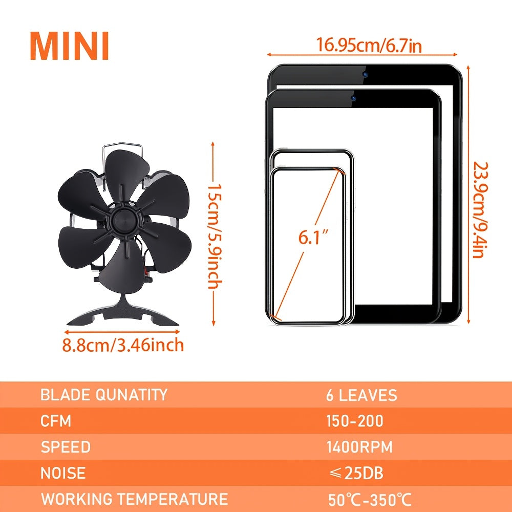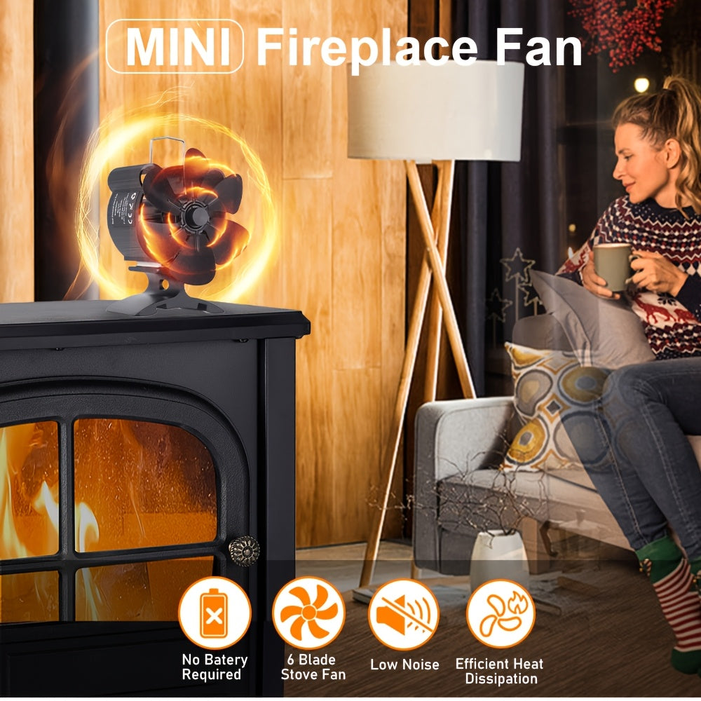 Portable 6-Blade Heat Powered Fireplace Fan for Wood Log Burners and Eco Heaters