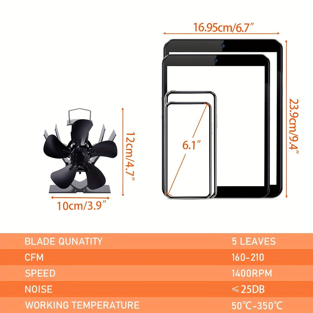 Portable Aluminum Stove Fan for Wood Burning Fireplaces, Silent Heat Powered