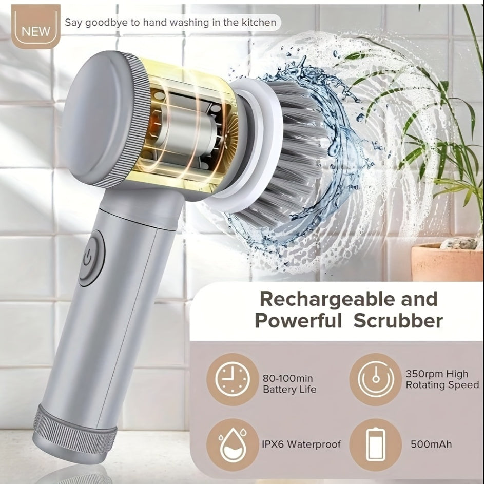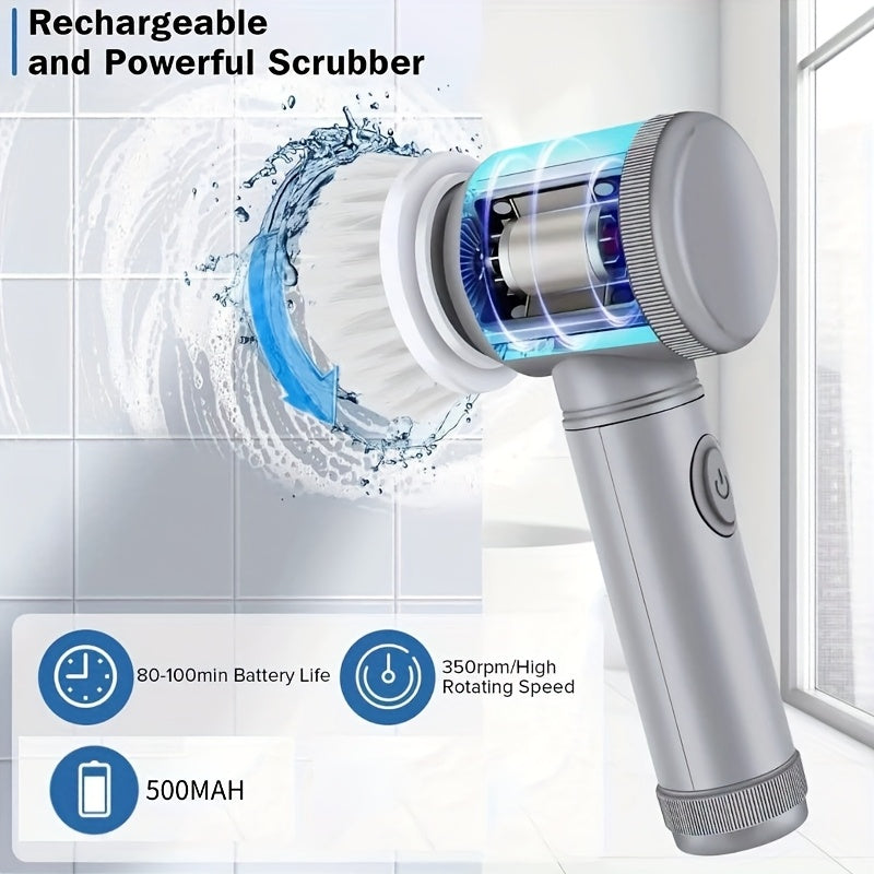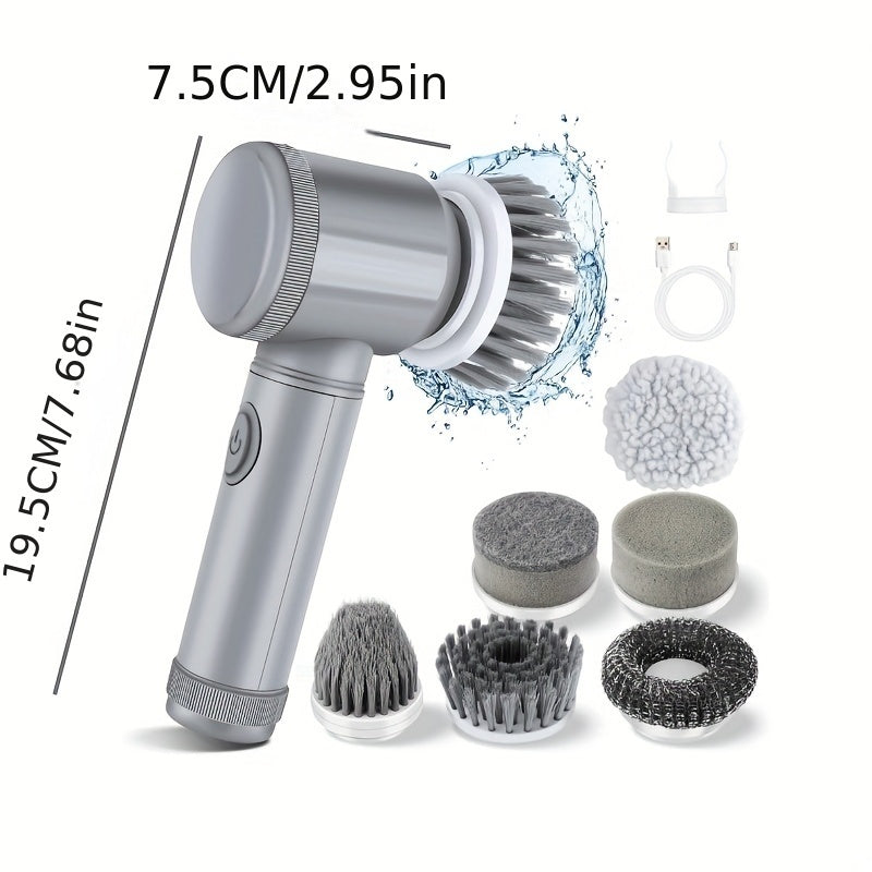Electric Floor Cleaner with Rechargeable Battery and 7 Brush Heads for Kitchen and Bathroom