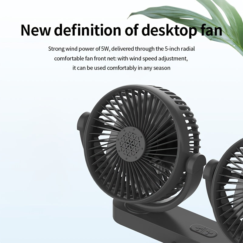 Portable USB Fan with Dual Rotating Heads, 3-Speed, Quiet Motor, Indoor Outdoor