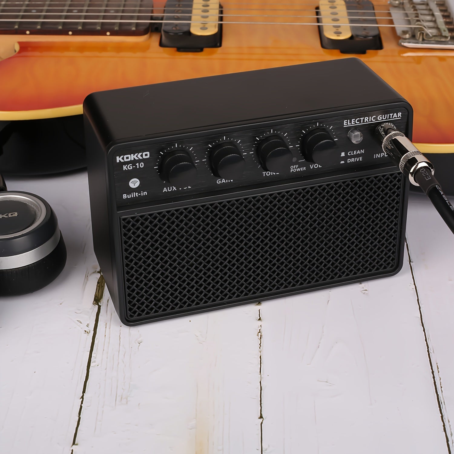 Portable Electric Guitar Amplifier with USB-C Rechargeable Battery Dual Speakers Black