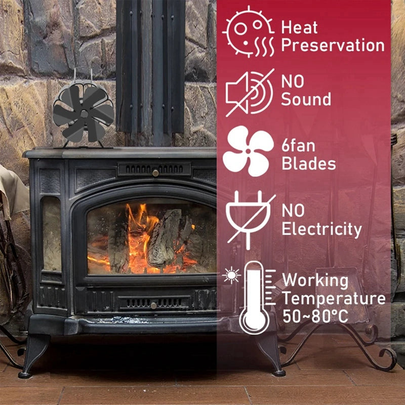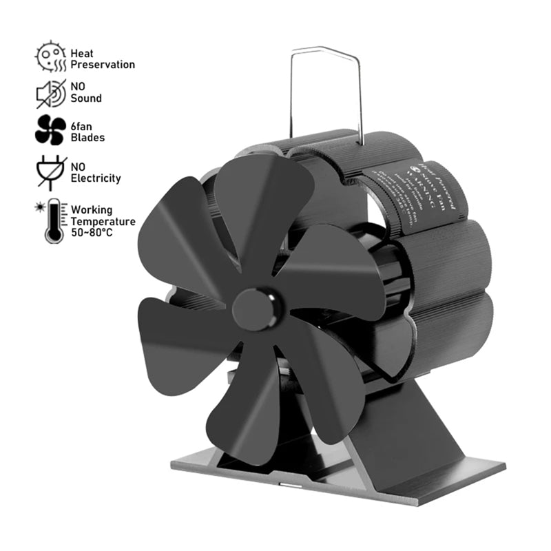 Premium 6-Blade Heat Powered Stove Fan for Wood and Gas Burners Durable Aluminum