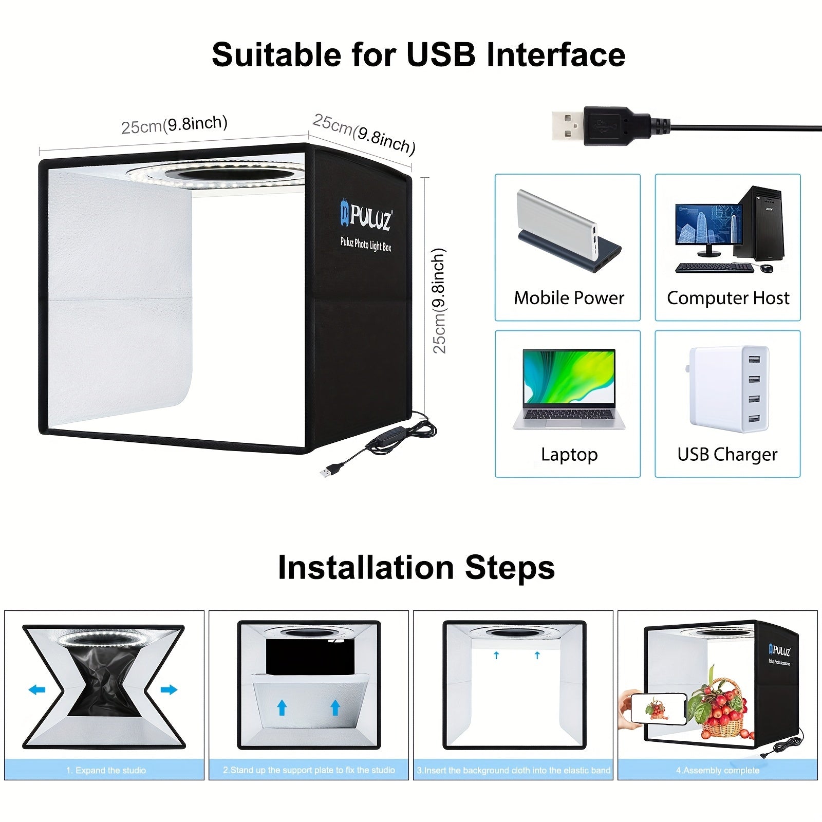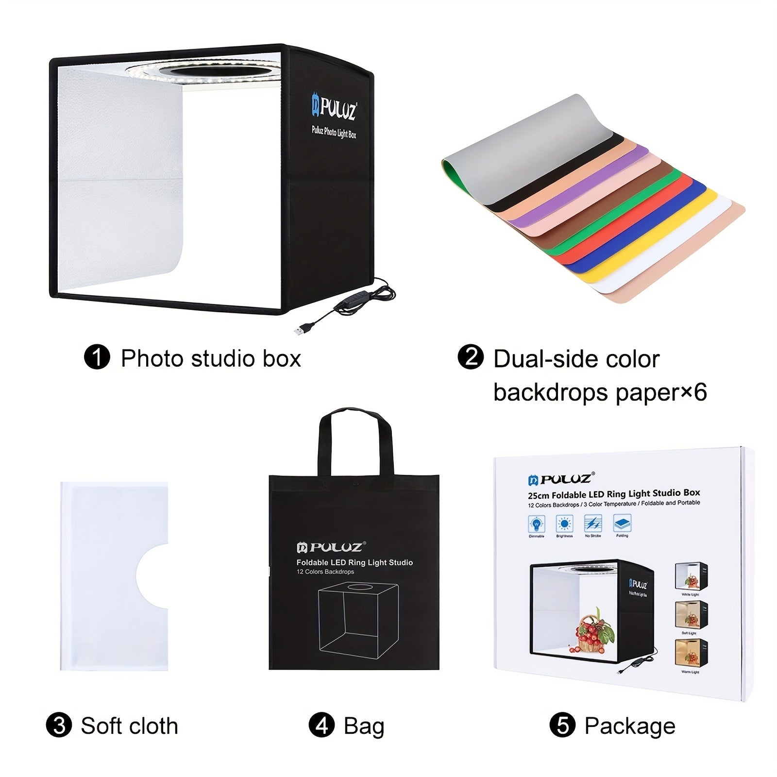 Portable 24.89cm Ring Light Studio with Dual Color Temperature 3 Modes and 6 Backdrops