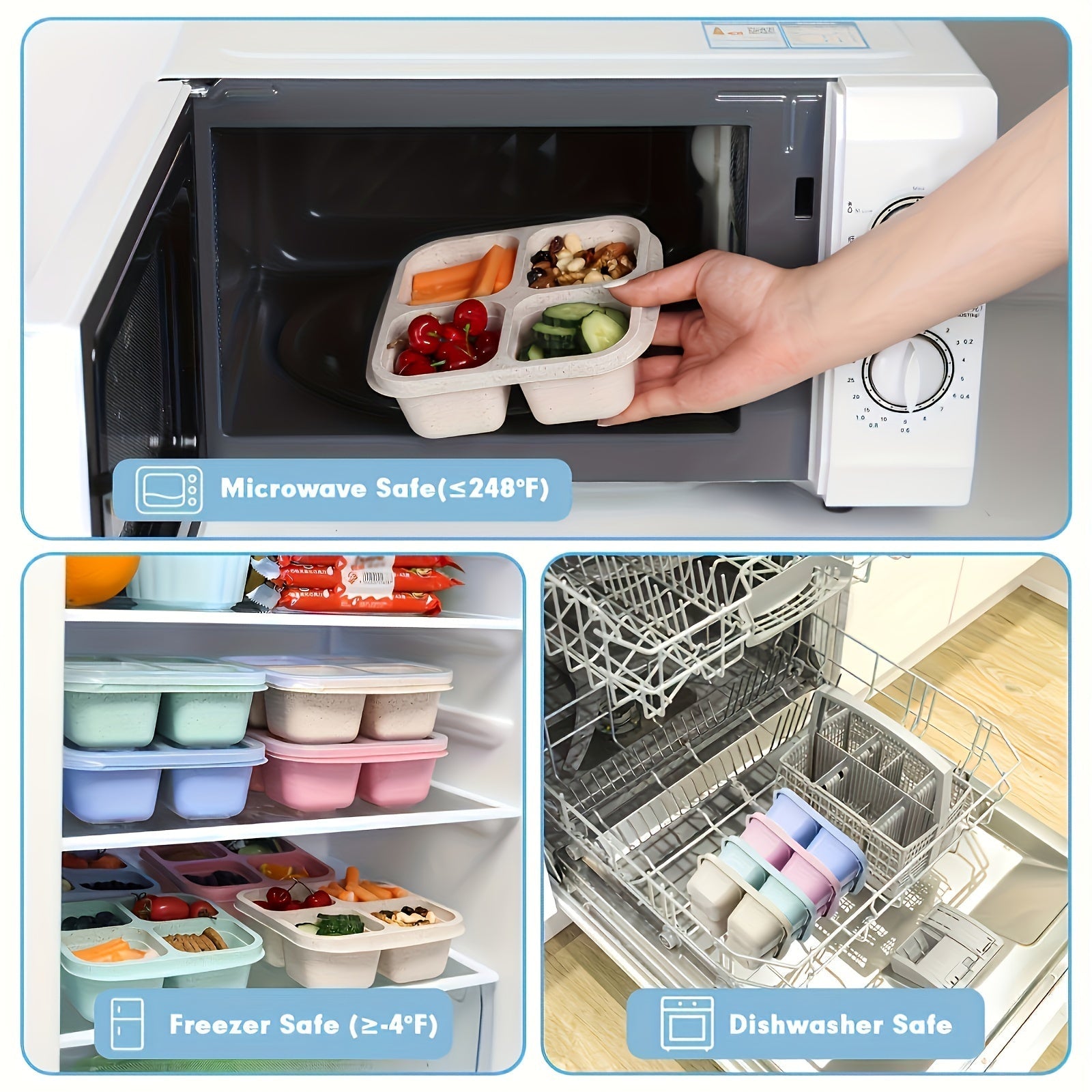 Reusable BPA-Free Meal Prep Container with Transparent Lid, 4 Compartments, Wheat Straw