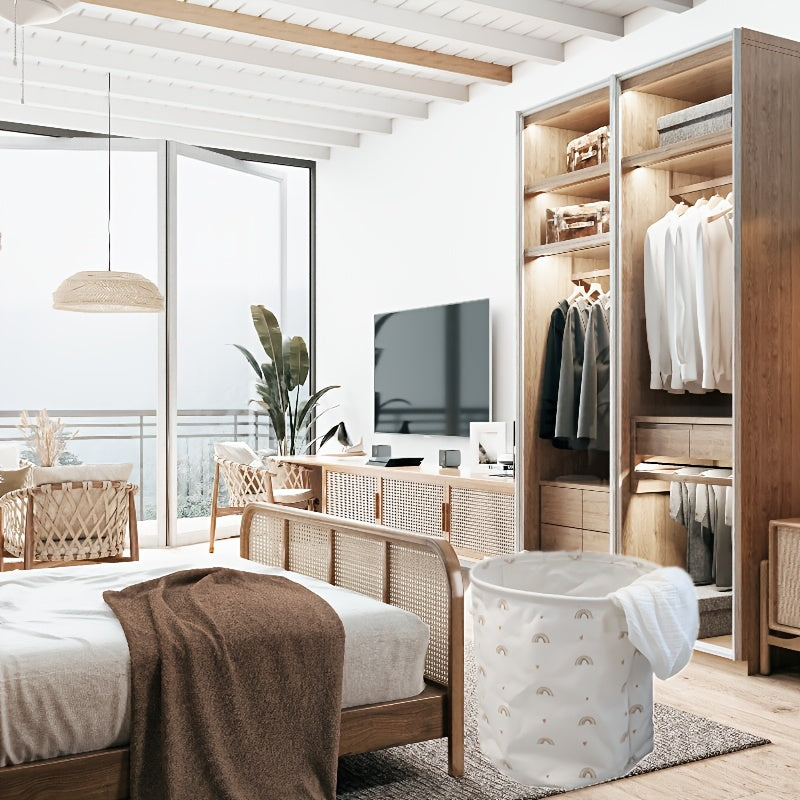 Collapsible Laundry Basket with Handles Rainbow Design Polyester Hamper for Clothes Storage