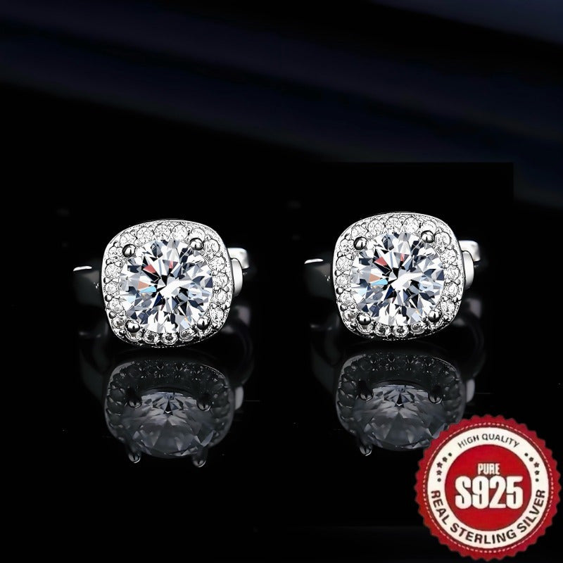 925 Silver Retro Square Earrings with Synthetic Zircon for Daily and Party Wear