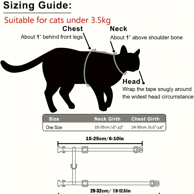 Adjustable Cat Harness and Leash Set for Kittens, Polyester, Small, Solid Pattern