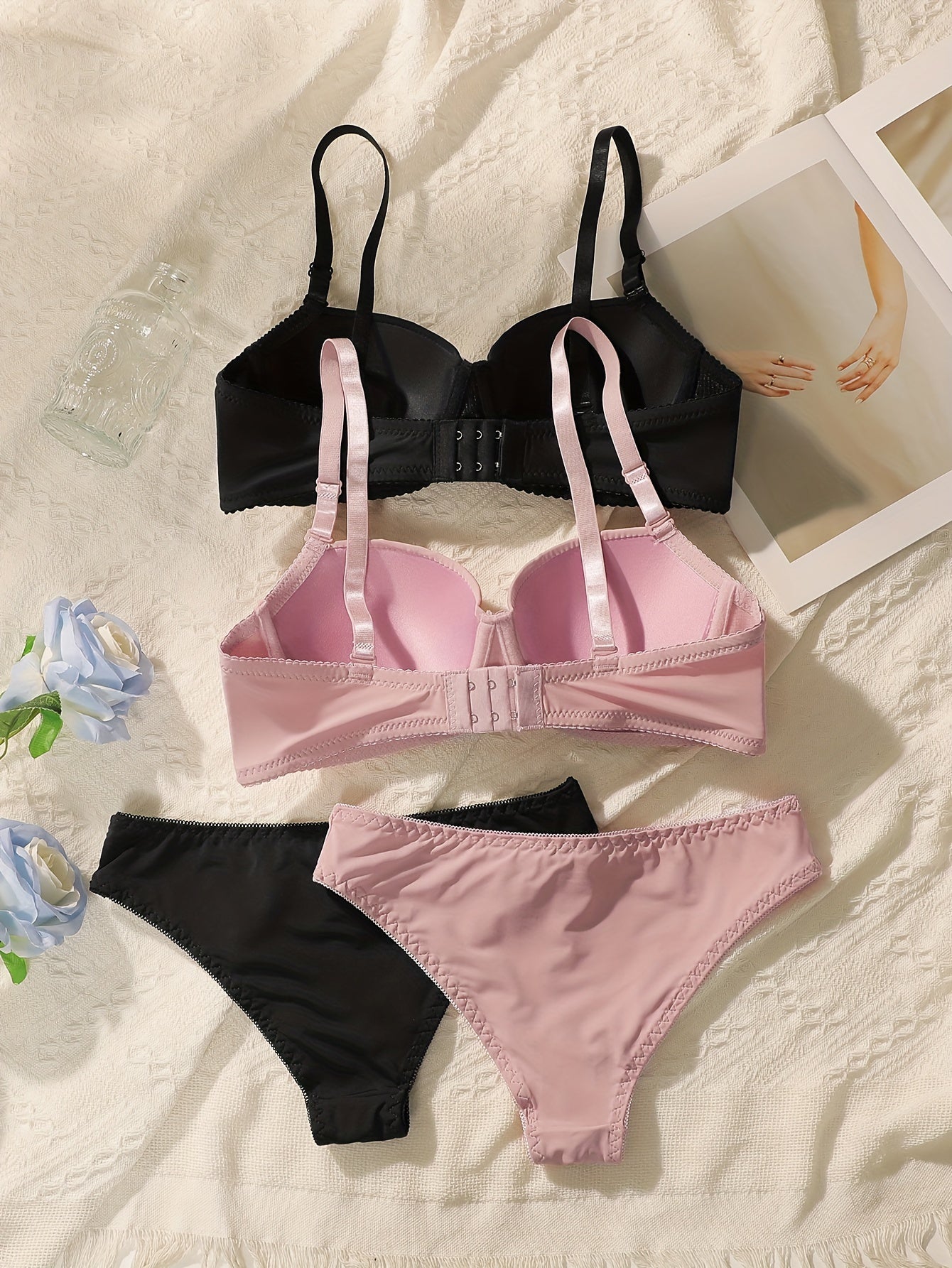 Seamless Push-Up Bra and Panty Set for Women Nylon Elastane Underwire Support Black Beige
