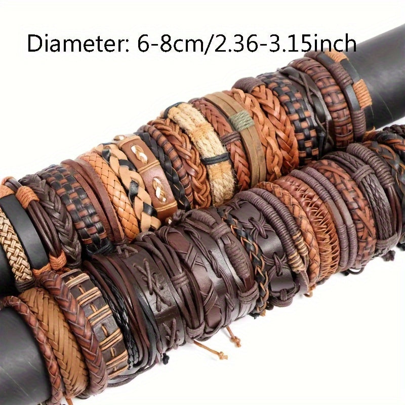 Set of 10 20 or 30 Faux Leather Bracelets for Men Women Adjustable Black Brown Gift