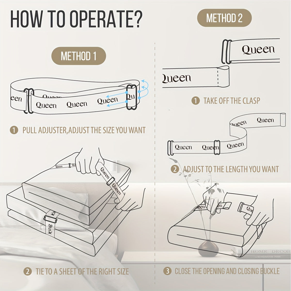 Set of 2 Adjustable Bedding Organizer Straps Elastic Bands for Sheets Pillows and Toys