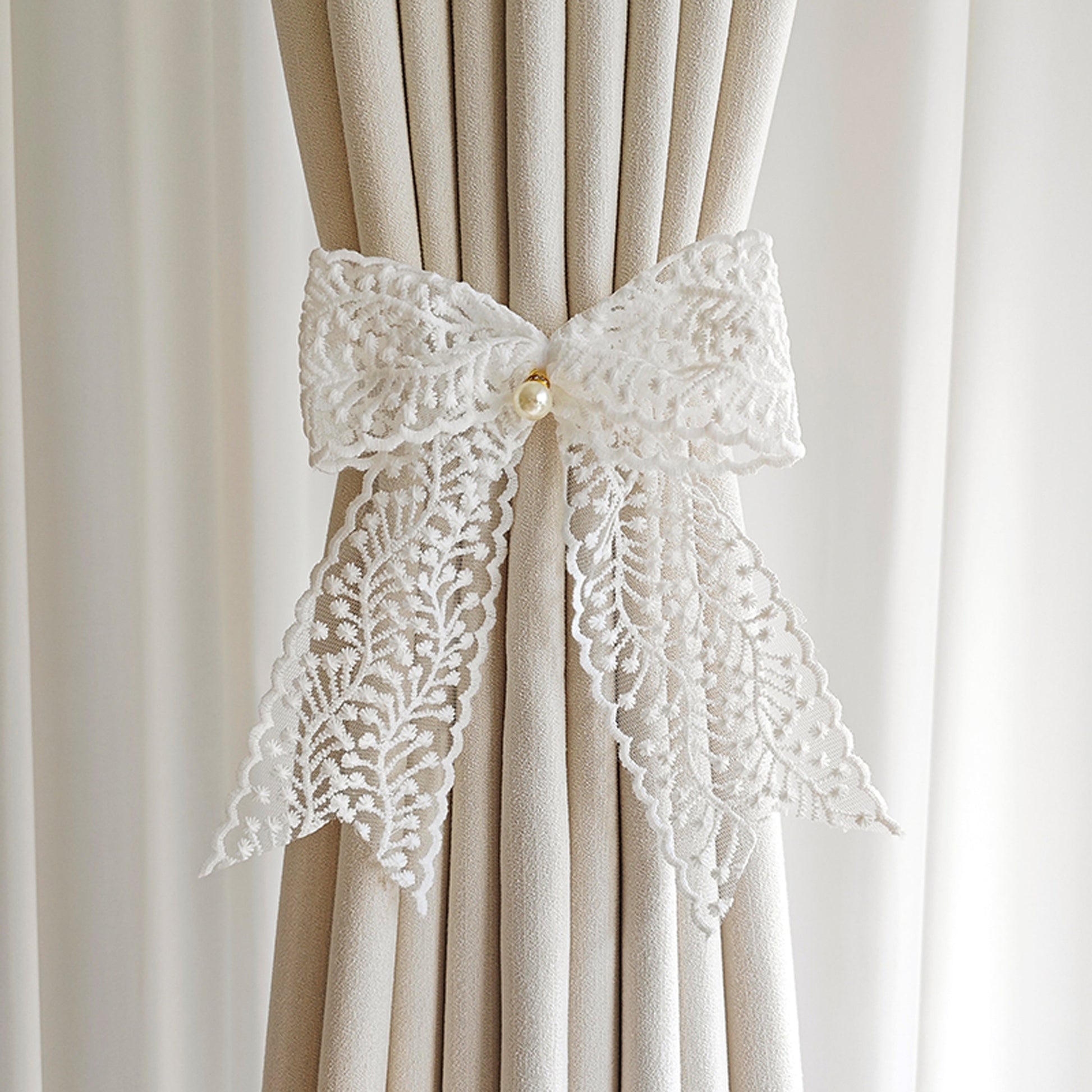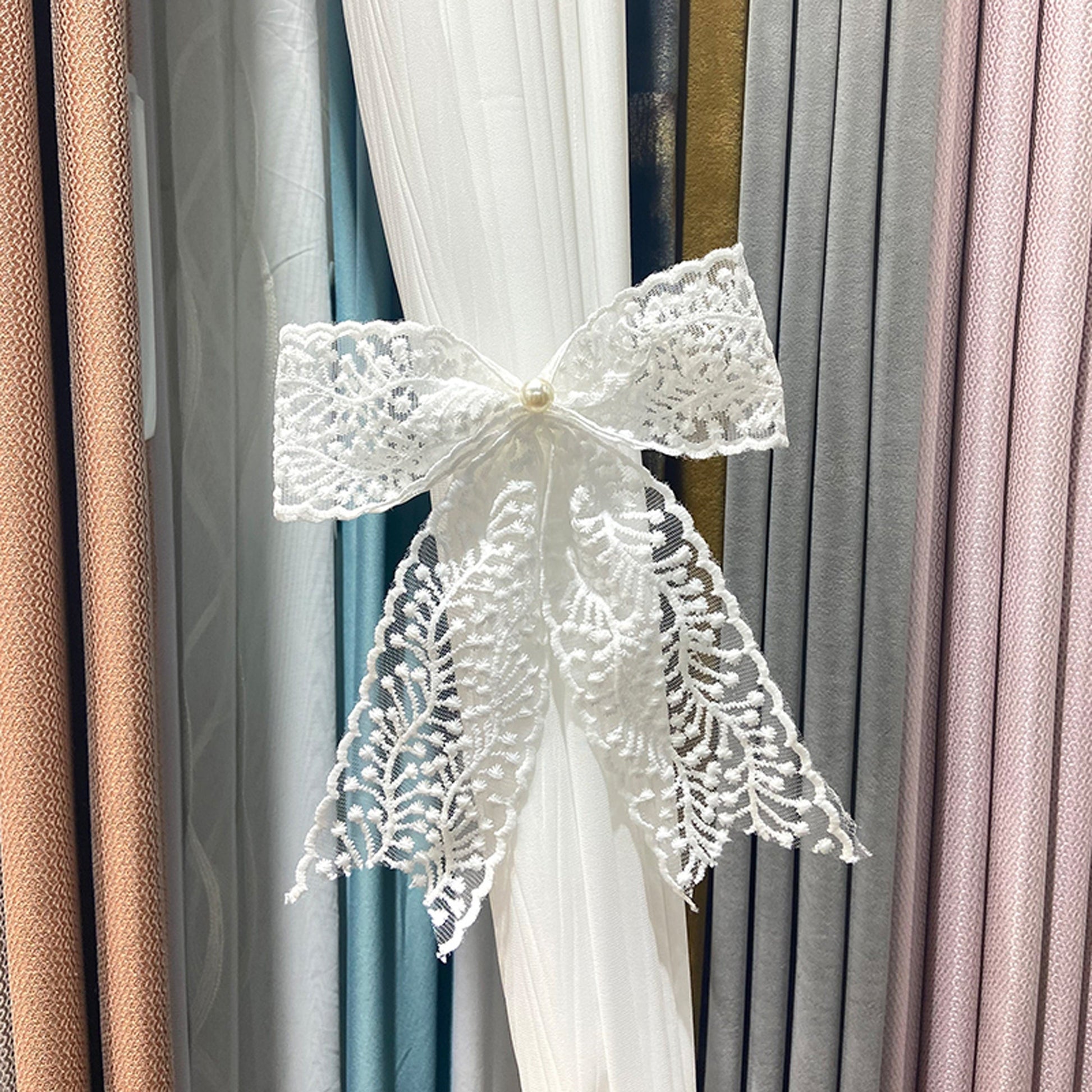 Set of 2 Lace Bow Curtain Tiebacks Adjustable Polyester Holdbacks for Heavy and Sheer Drapes