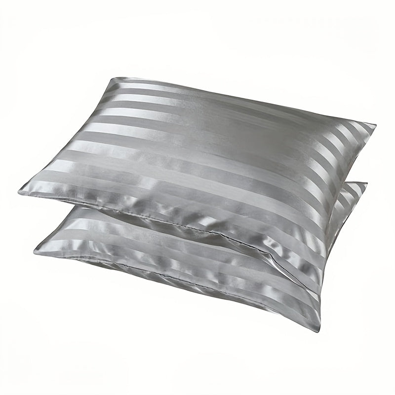 Set of 2 Satin Striped Pillow Covers 100% Polyester Soft Washable Home Decor