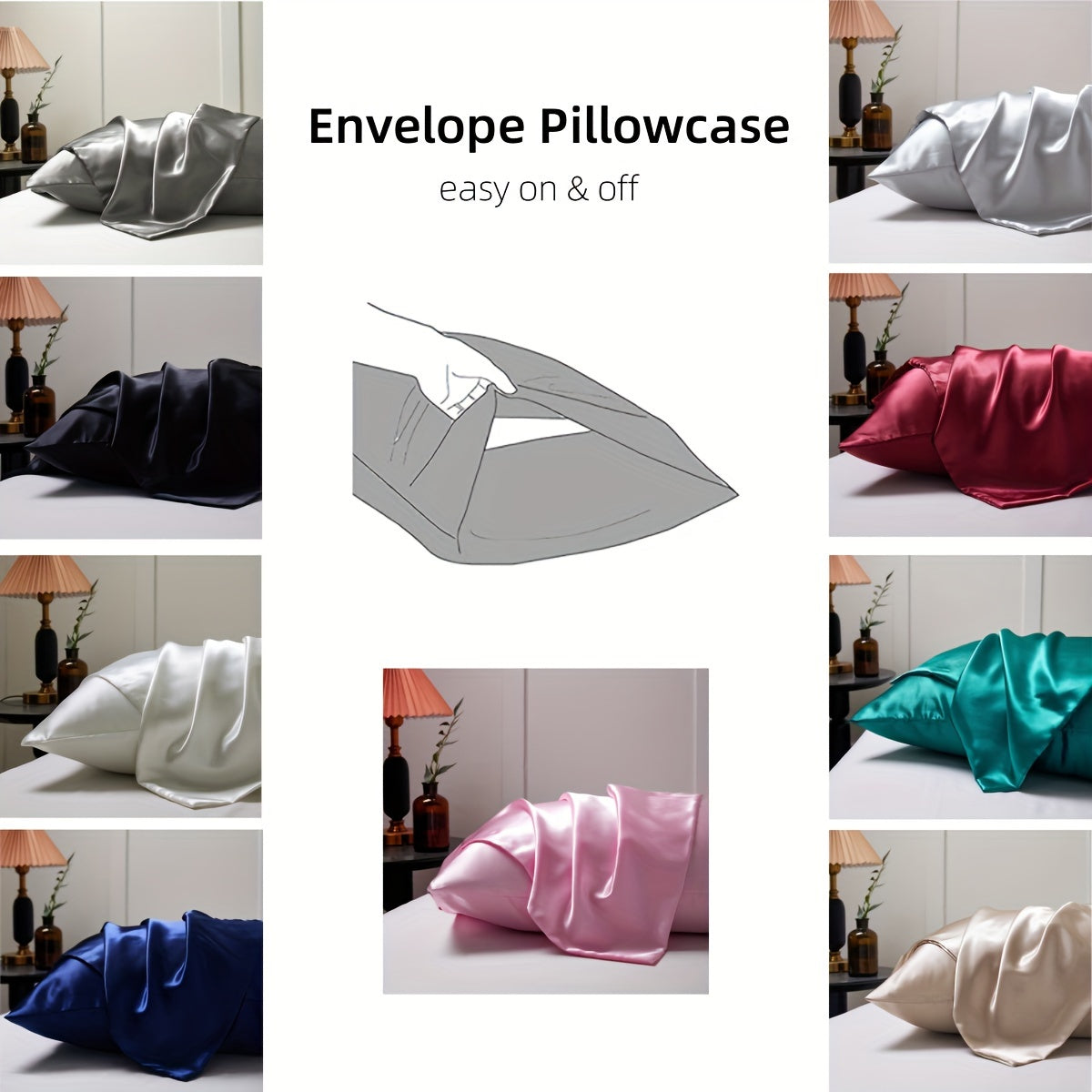 Set of 2 Satin Pillowcases in Multiple Colors Soft Airy Envelope Closure