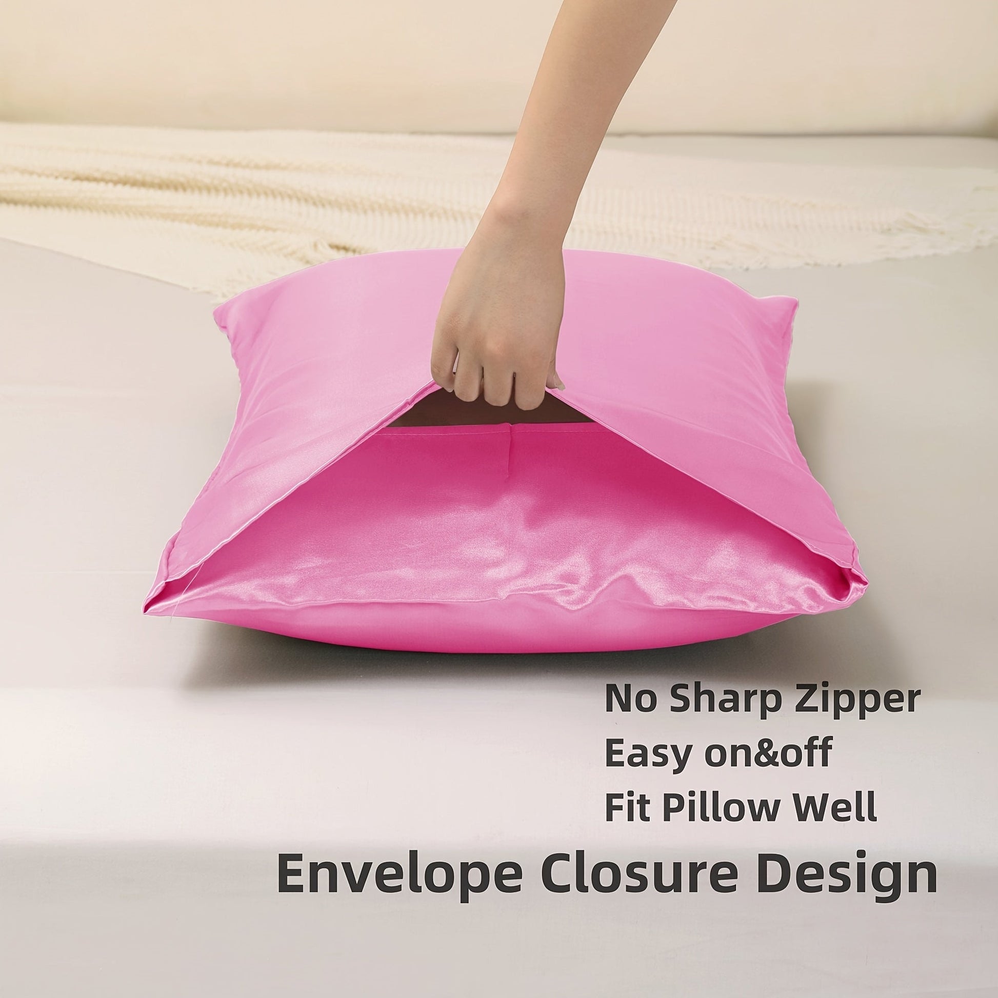 Set of 2 Soft Satin Pillowcases Hair Skin Friendly Envelope Closure