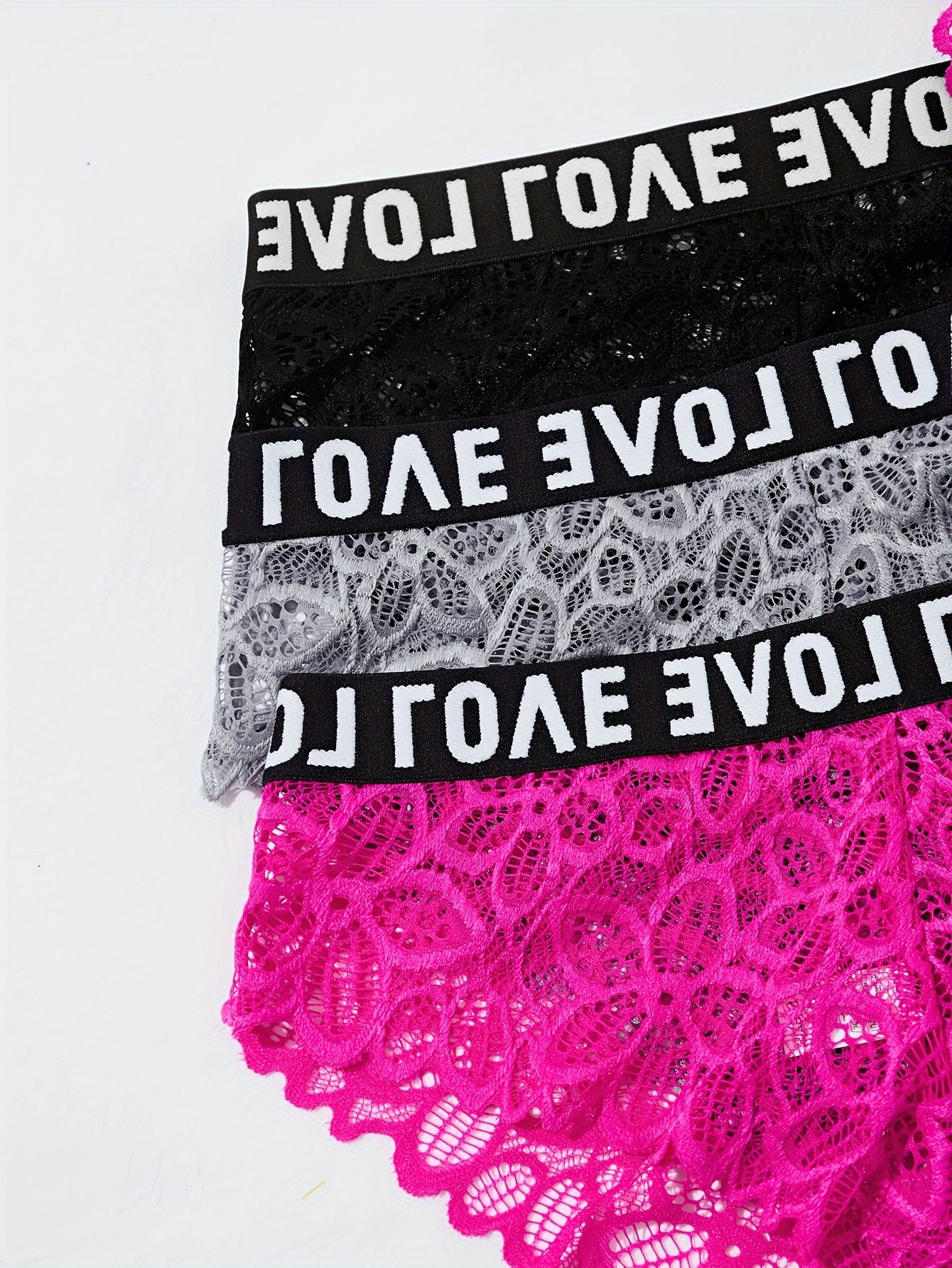 Women's Floral Lace Lingerie Set with Letter Print Contrast Trim Cami Bra and Panties