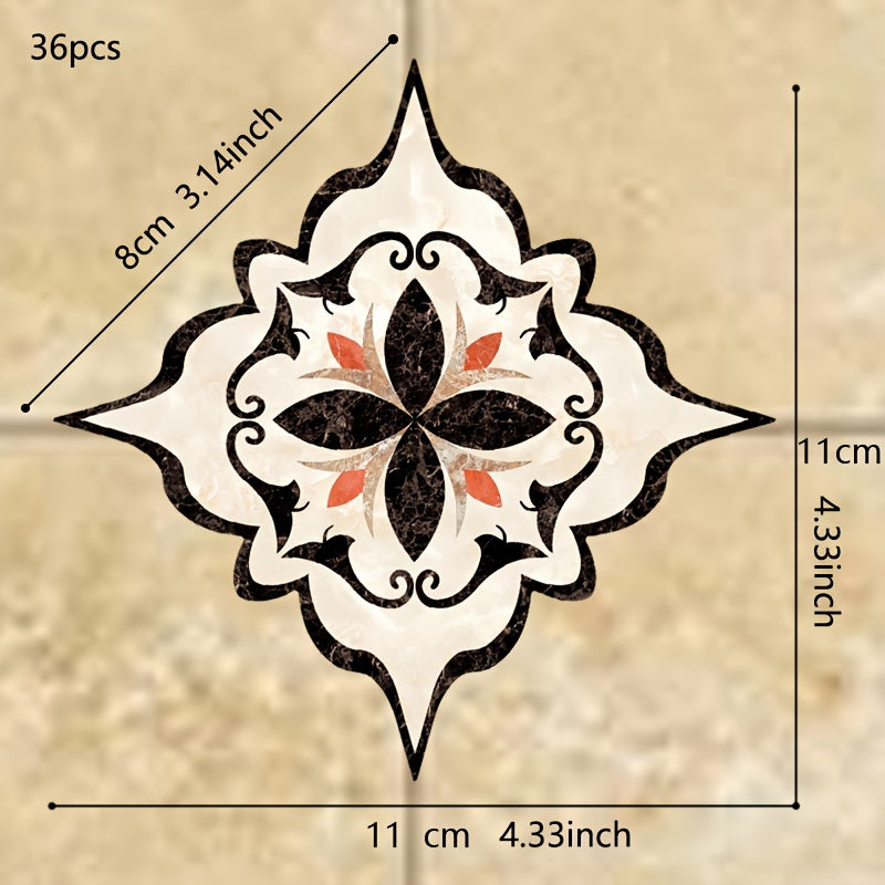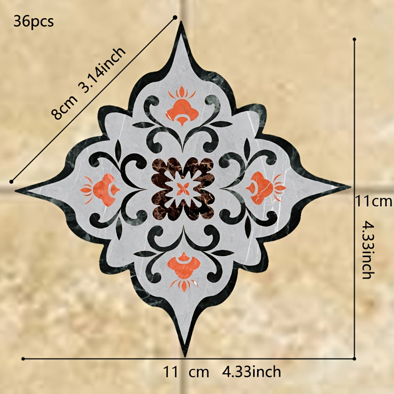 Set of 36 Waterproof Bohemian Tile Stickers for Floors, Self-Adhesive, 11cm Square