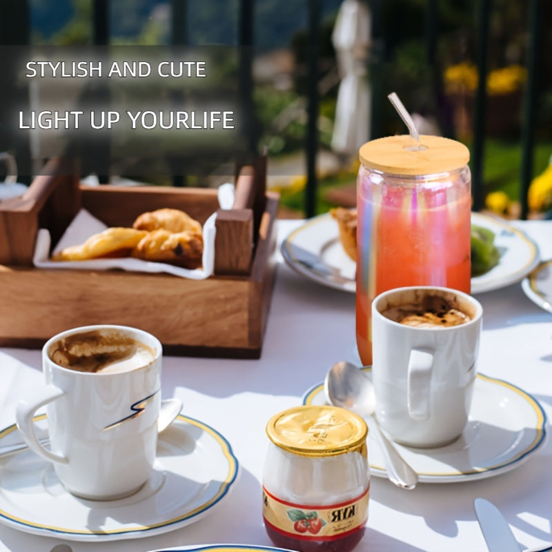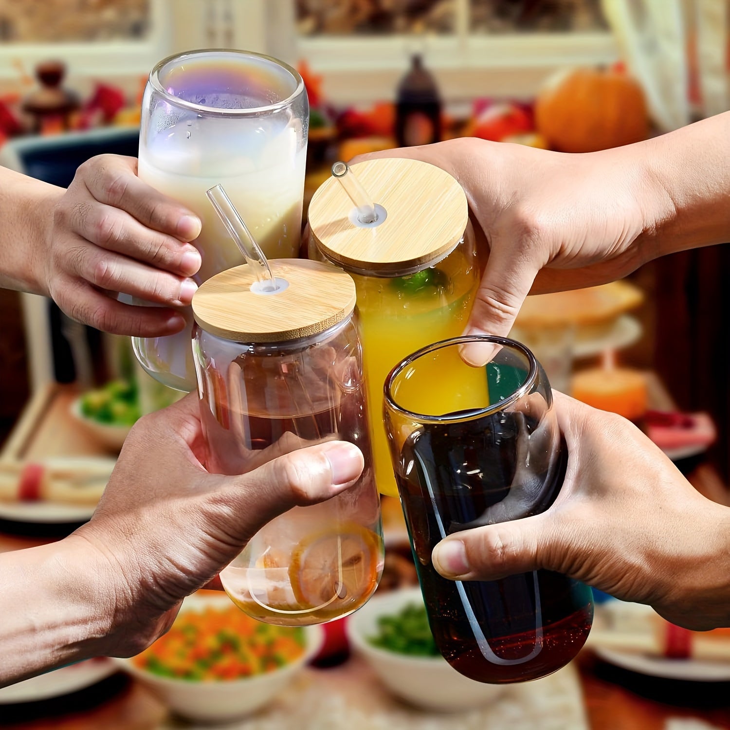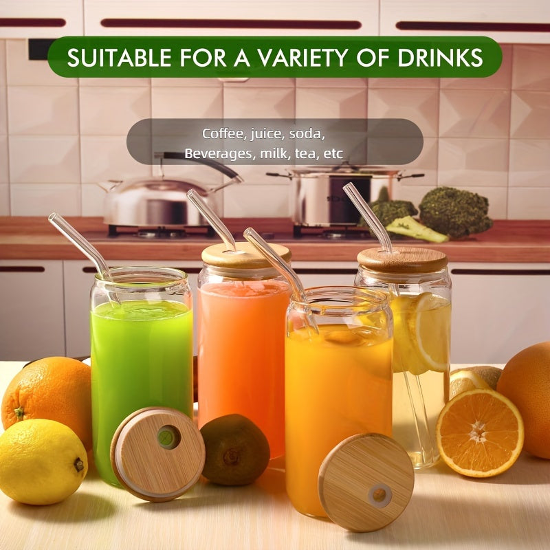 Set of 4 18.6oz Gradient Color Mason Jar Cups with Bamboo Lids Glass Straws and Cleaning Brush