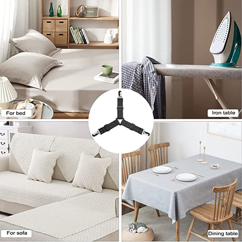 Set of 4 Adjustable Triangle Bed Sheet Straps for Secure Corner Fit
