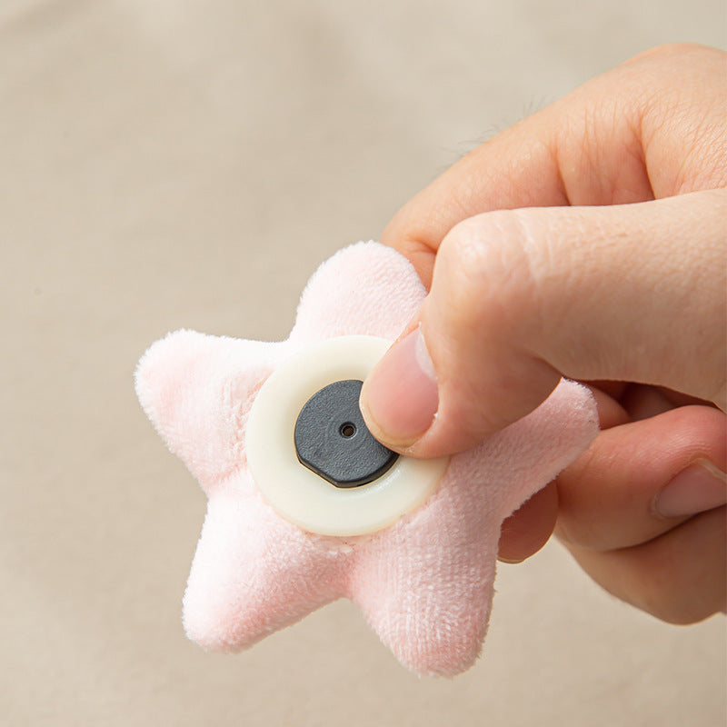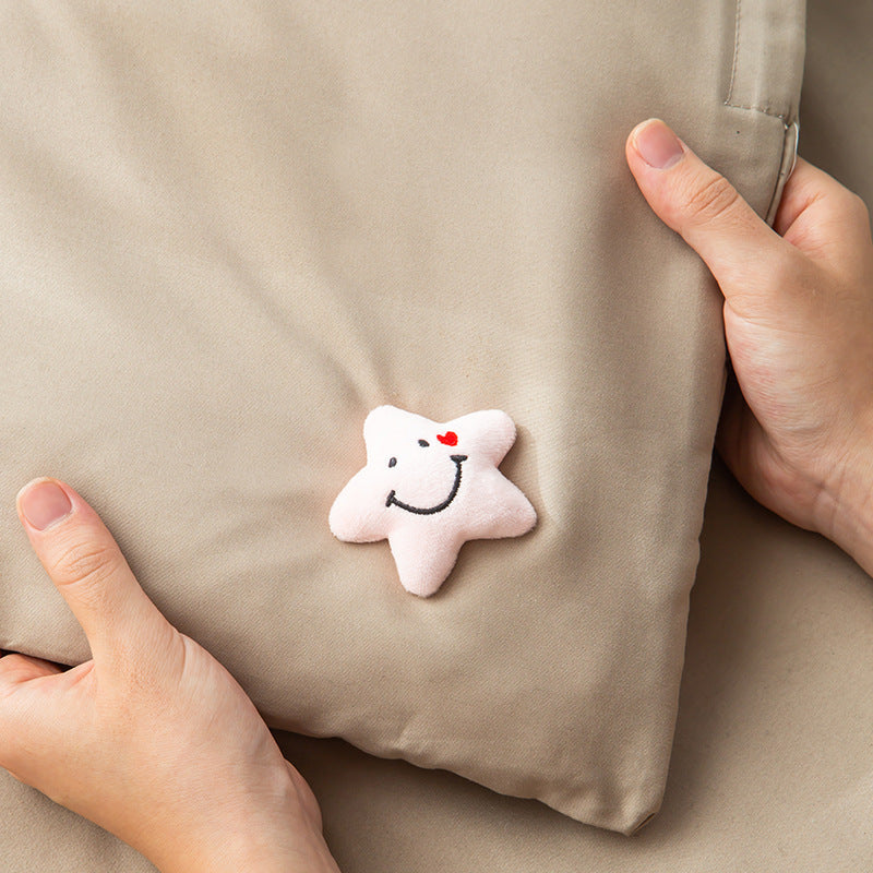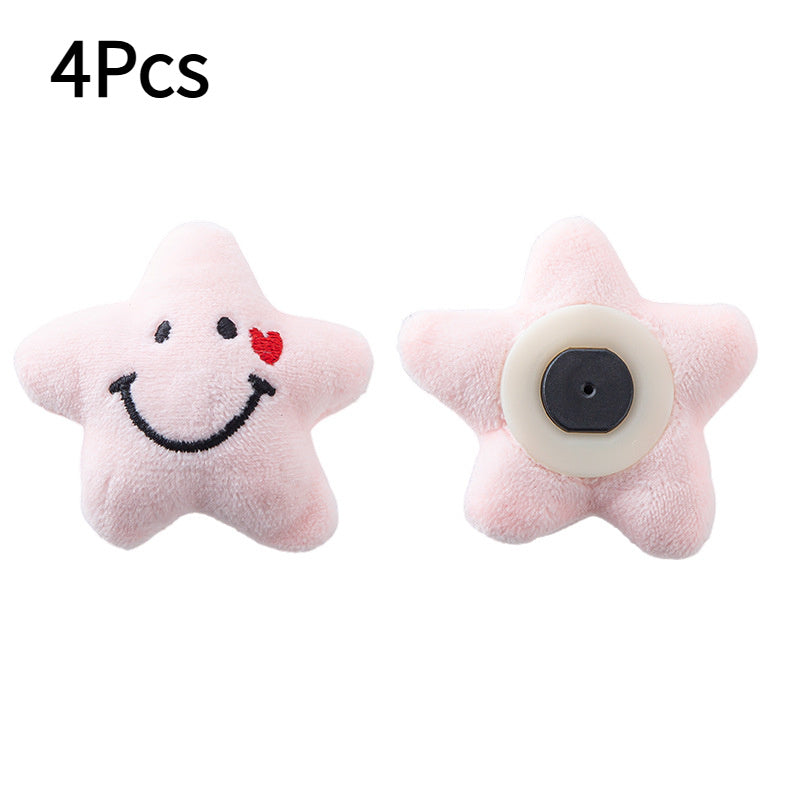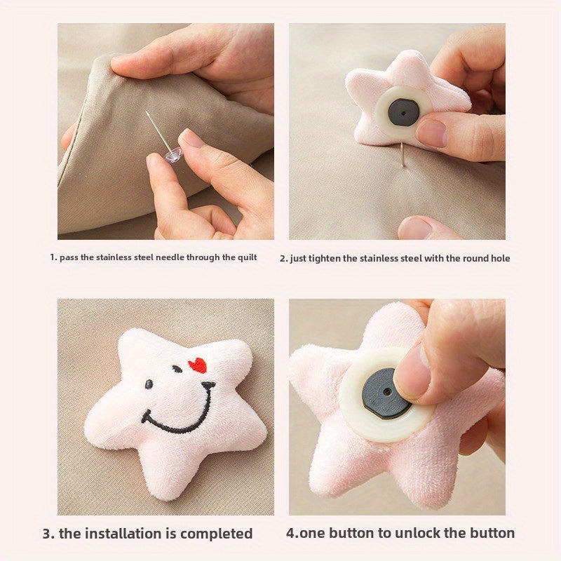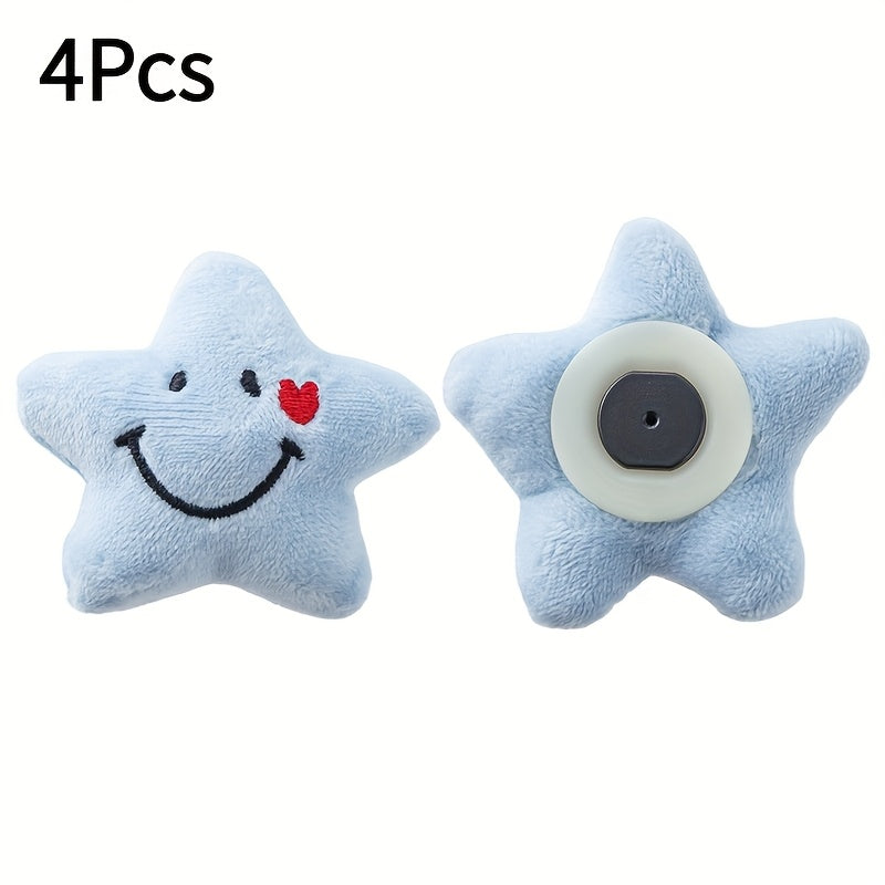 Set of 4 Blue Star-Shaped Quilt and Bed Skirt Corner Holders with Plush Faces