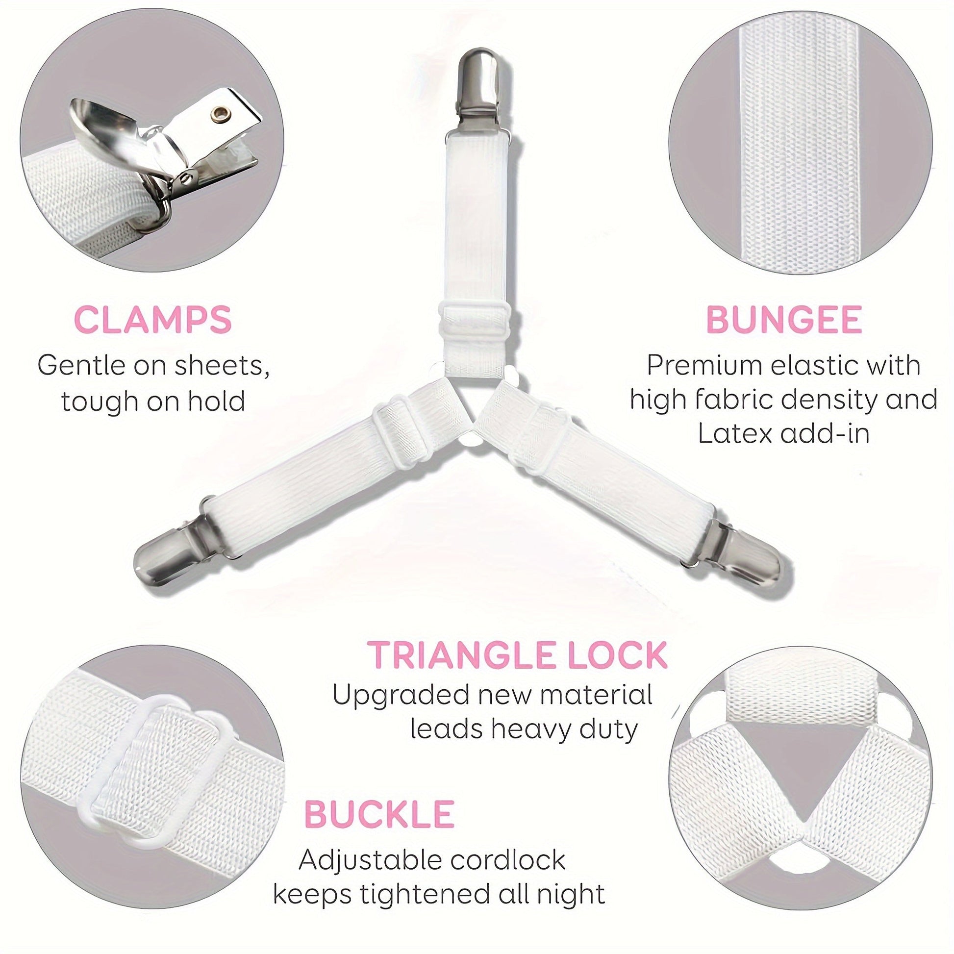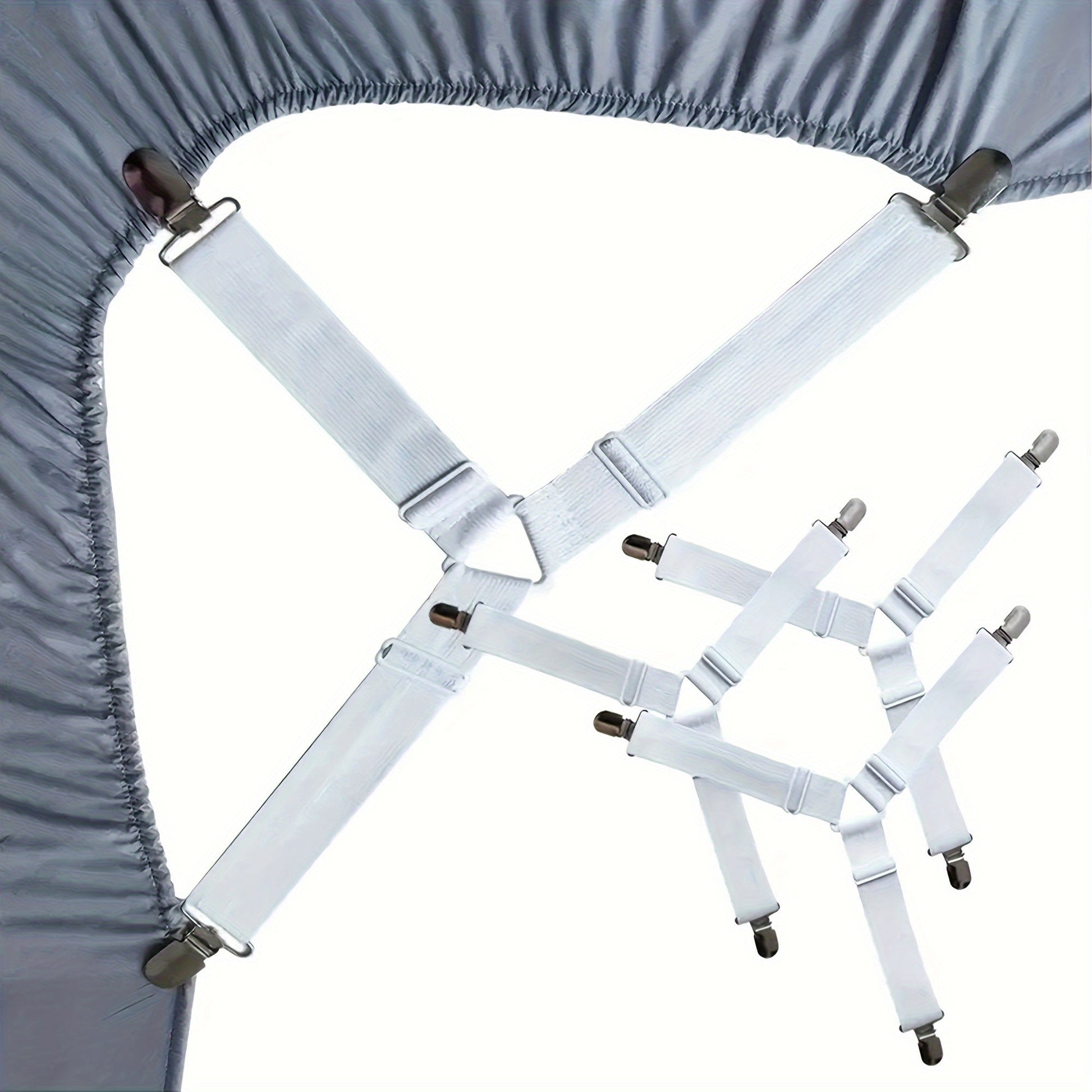 Set of 4 White Adjustable Bed Sheet Fasteners Non-slip Clamps for Sheets Quilts Curtains
