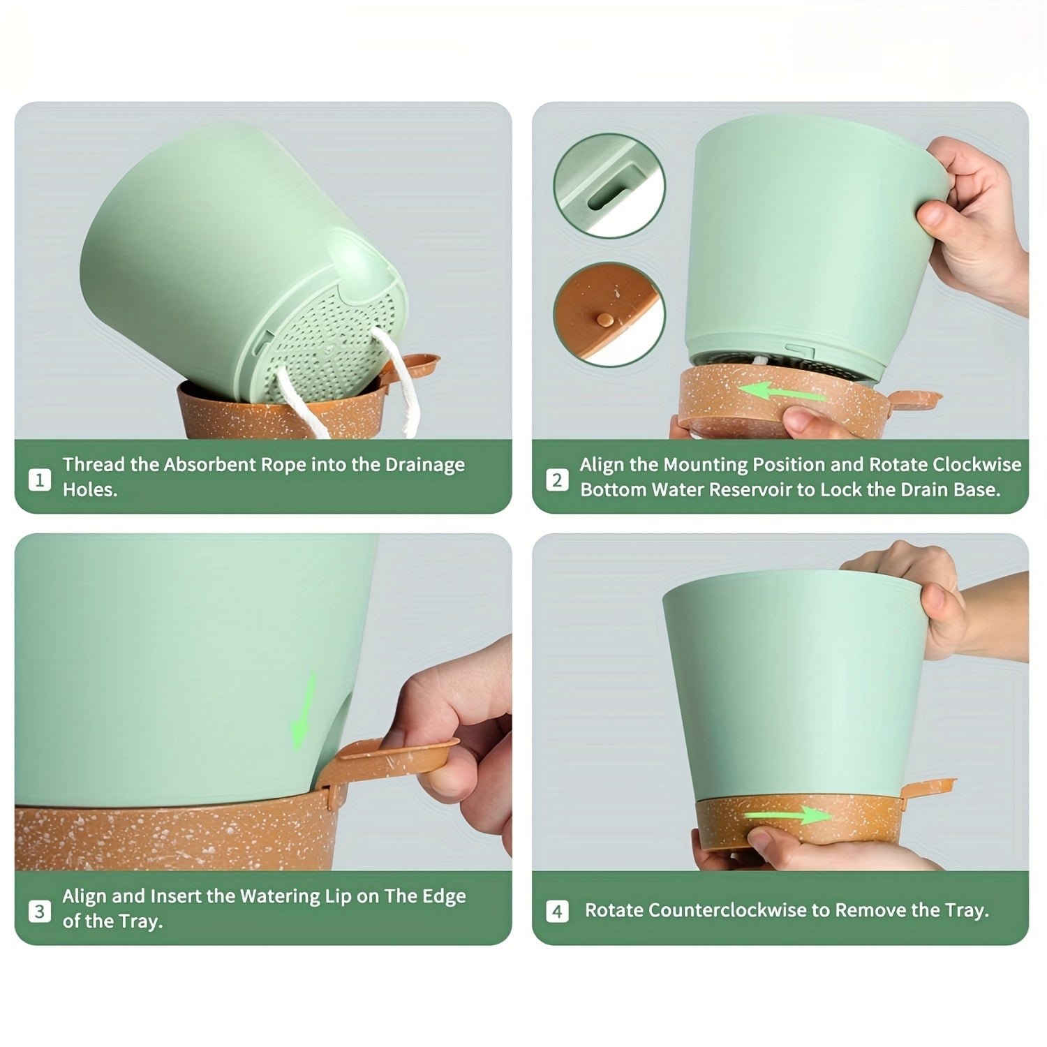 Set of 5 5-Inch Plastic Self-Watering Flower Pots with Drainage Holes and Trays for Indoor Outdoor Gardens